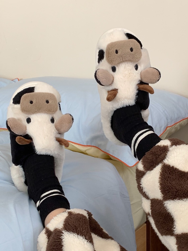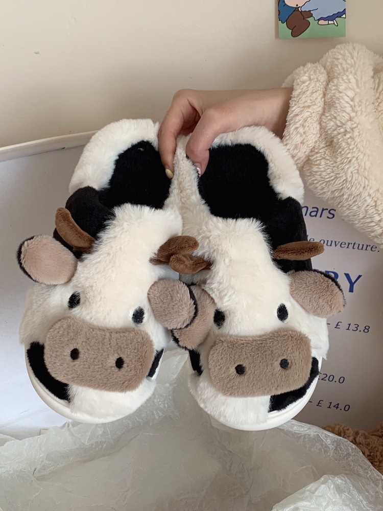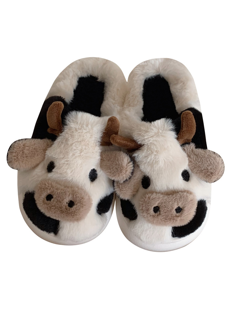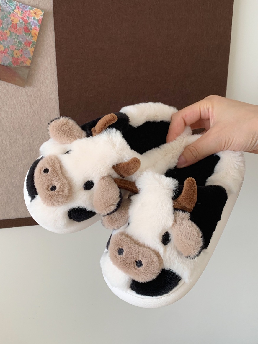 毛绒绒可爱小奶牛踩屎感卧室居家鞋男女秋冬季新款亲子软底棉拖鞋