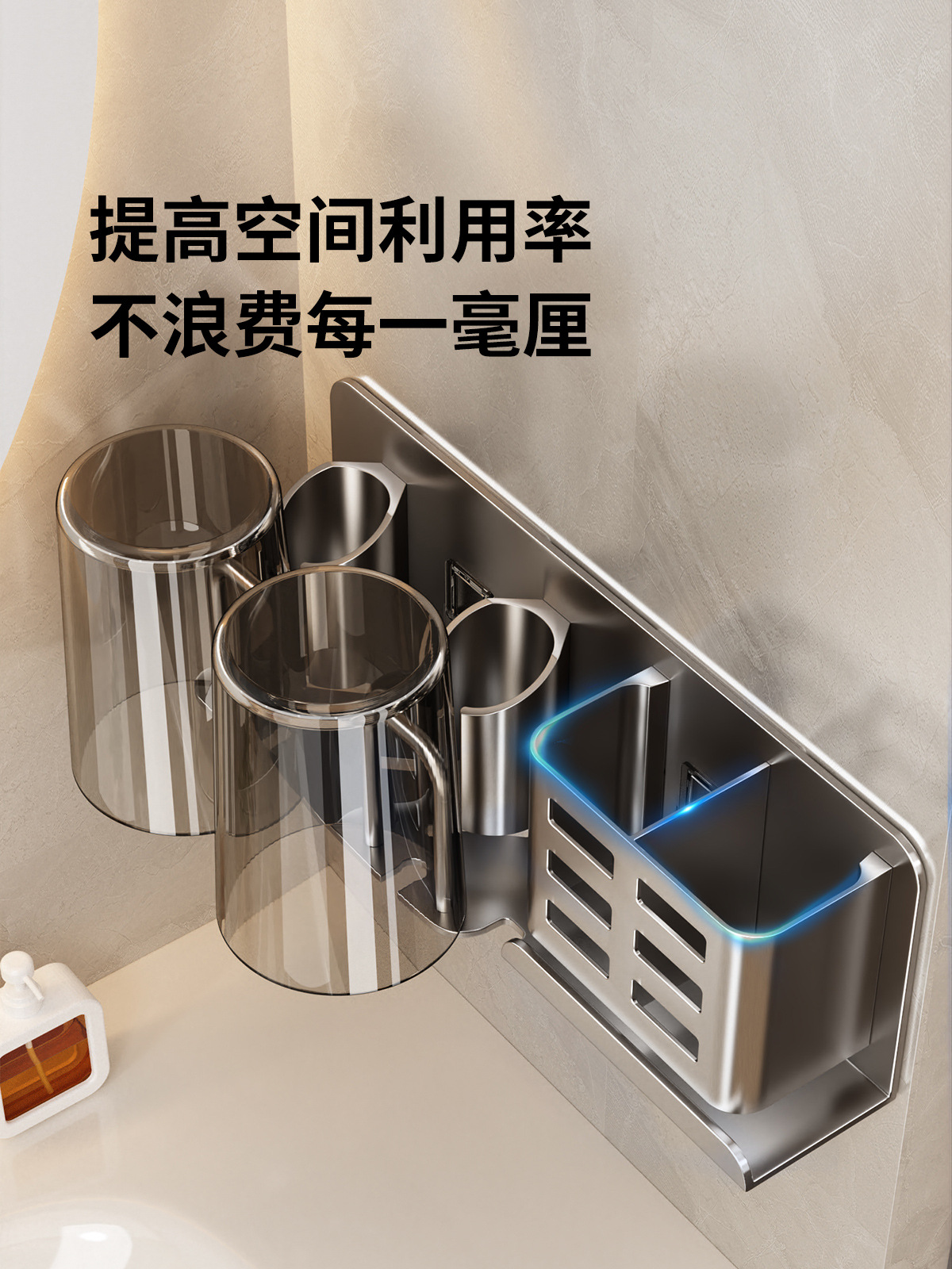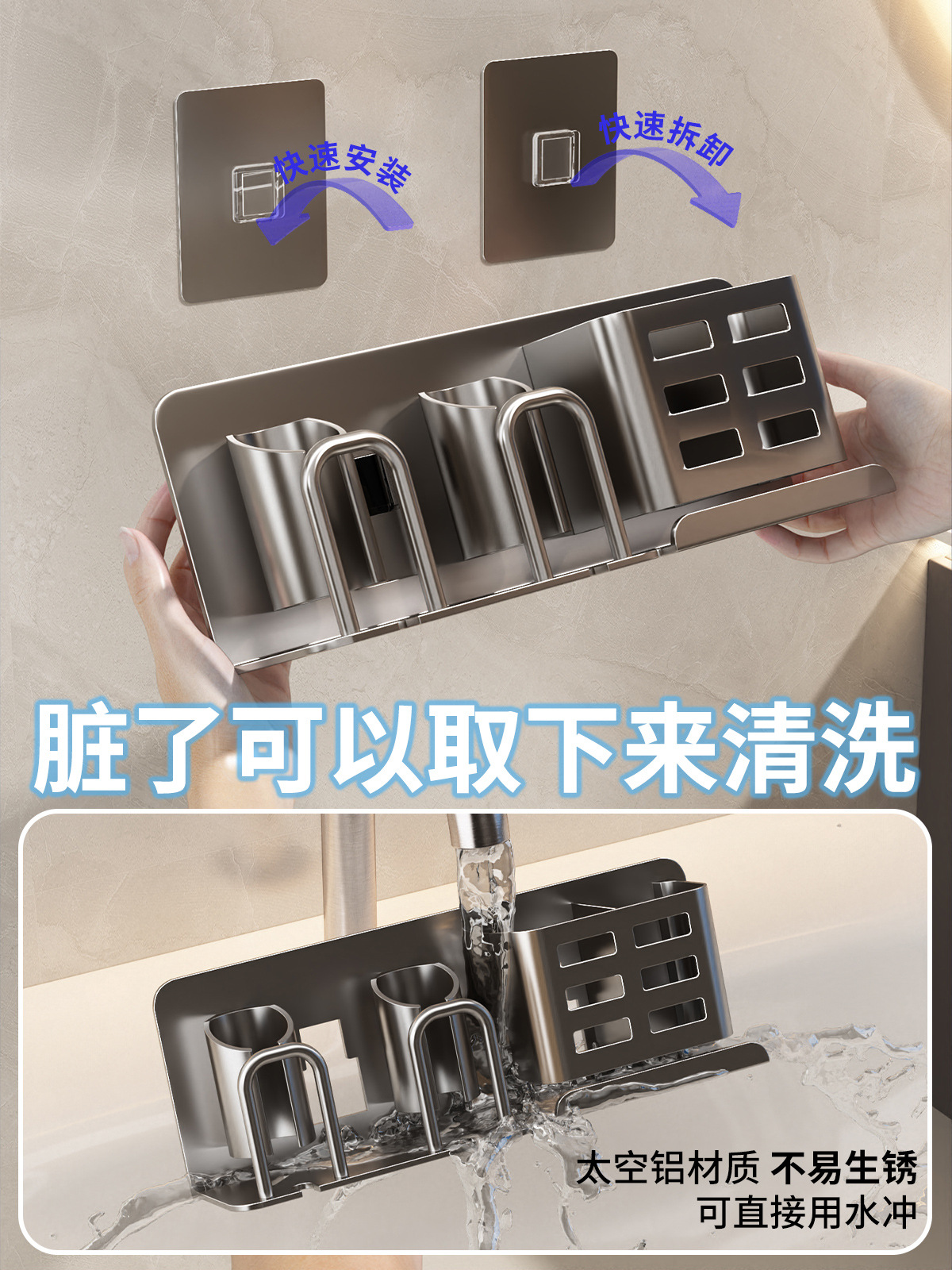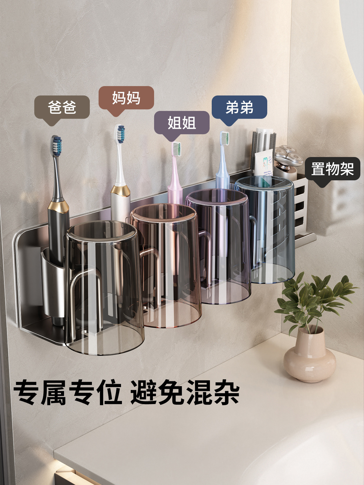 牙刷置物架免打孔卫生间牙杯漱口杯收纳家用壁挂式牙膏电动牙刷架