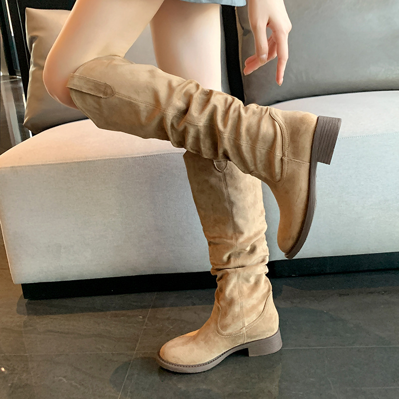 胖mm粗腿加大筒围长靴高筒靴堆堆靴秋冬新款西部牛仔大码加宽女靴