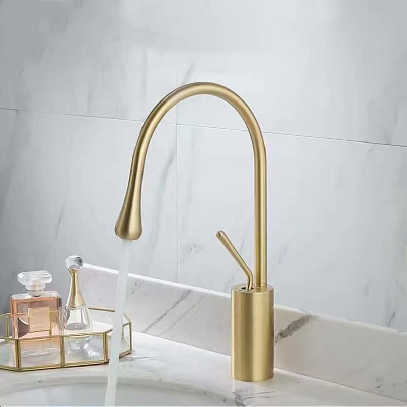 精铜艺术盆冷热龙头 水滴台面盆圆款欧式风龙头 酒店面盆高脚龙头