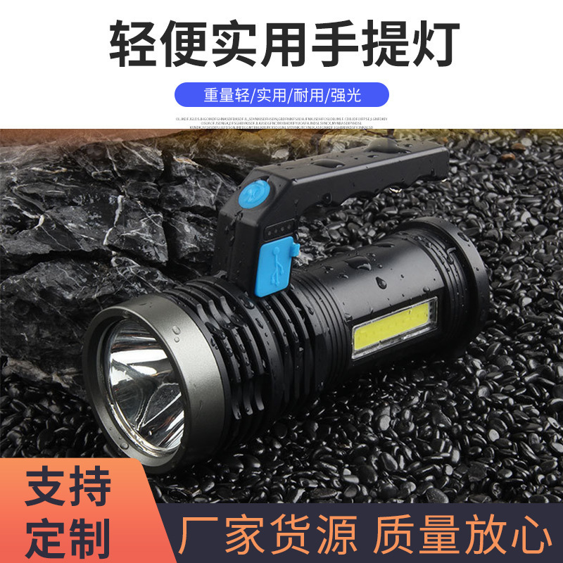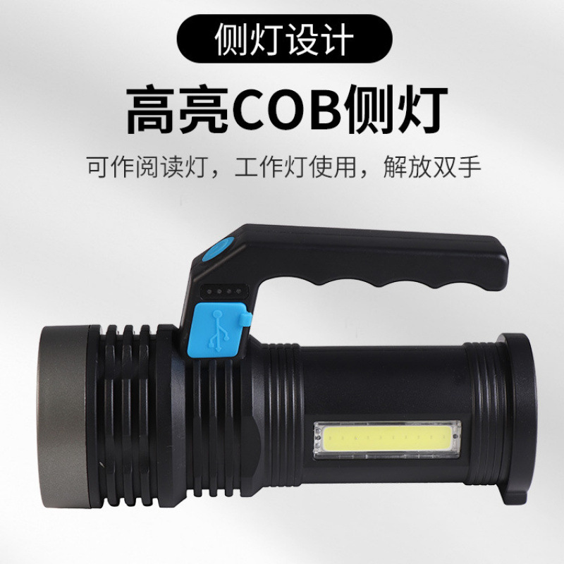 充电强光远射手电筒 家用户外强光手电筒 带侧灯双光源led手电筒