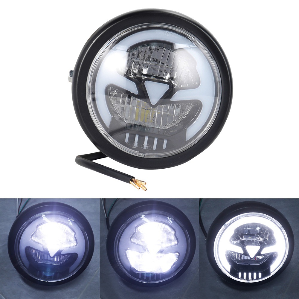 通用复古摩托车改装LED日行光圈前照大灯哈雷摩托车前大灯复古灯