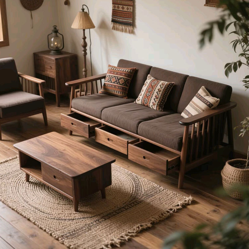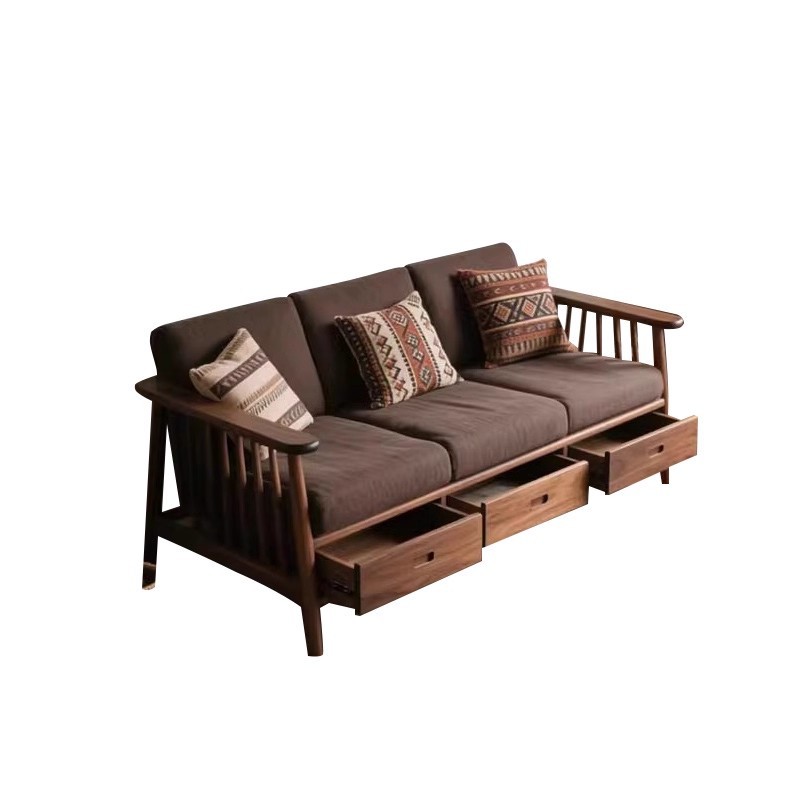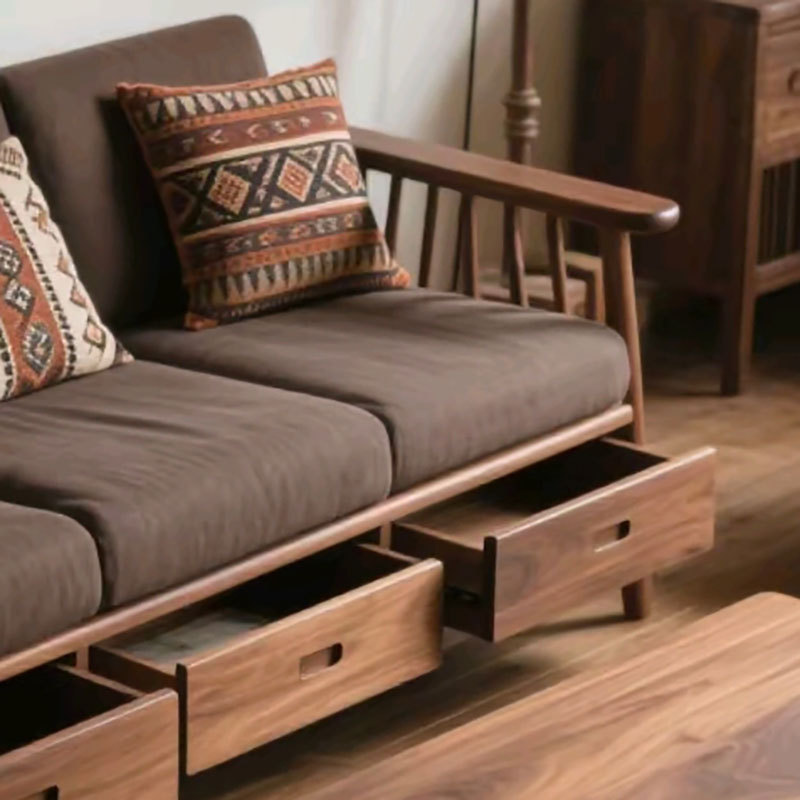 新中式小户型北美黑胡桃木沙发2025新款轻奢客厅休闲实木直排沙发