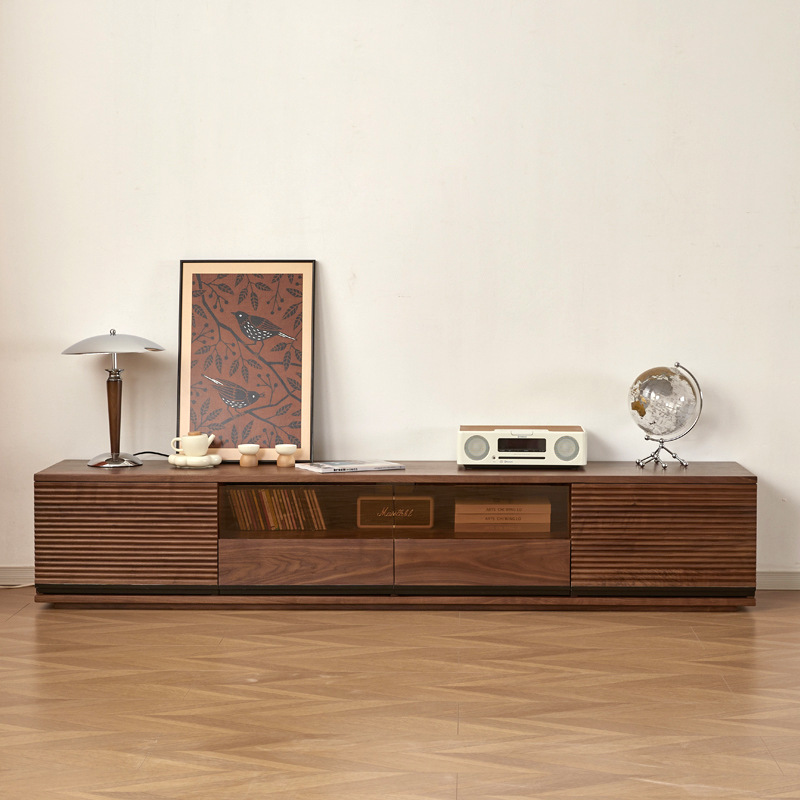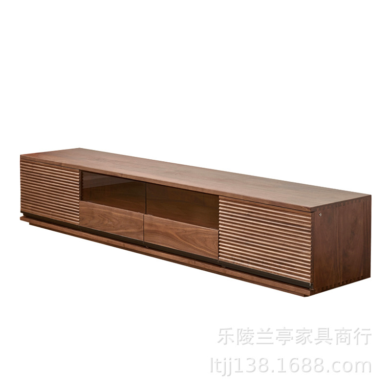 北美黑胡桃木电视柜2024新款带灯全实木落地柜现代简约视听柜定制