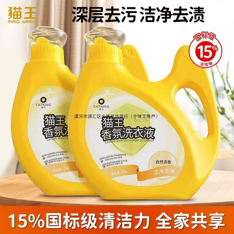 猫王洗衣液4斤大瓶国标级高活性物洗衣持久留香柔顺深层去污宿舍