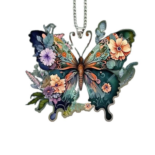 跨境爆款亚克力平面蝴蝶钥匙扣挂件车载后视镜挂饰