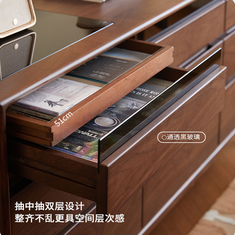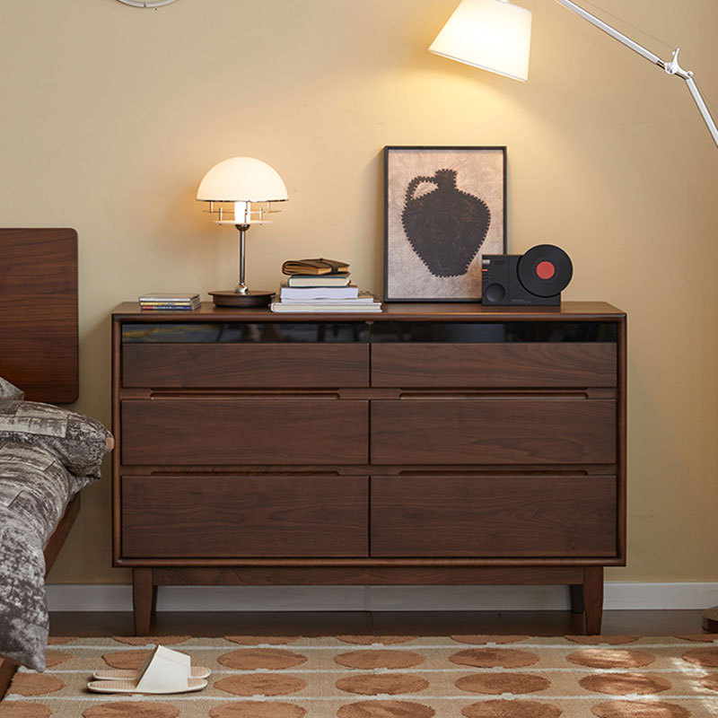 北美黑胡桃木实木六斗柜卧室靠墙床尾柜北欧客厅靠墙收纳柜可定制