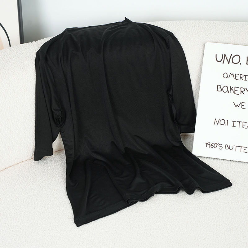 百搭纯色桑蚕丝半高领T恤女 春秋新款亲肤弹力五分袖打底衫