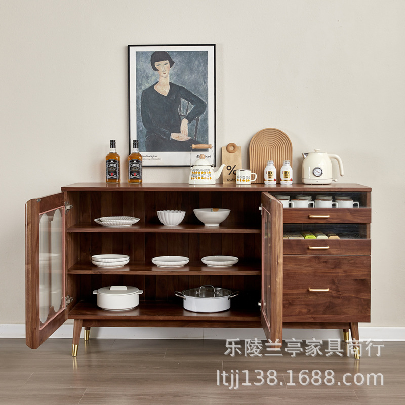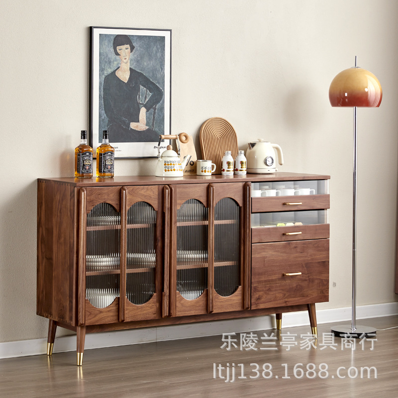 北美黑胡桃木餐边柜复古全实木矮收纳储物柜樱桃木多功能可定制
