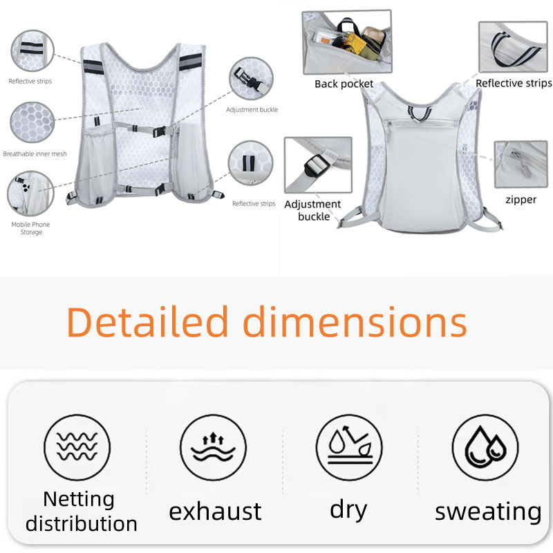 户外登山夜跑反光条骑行跑步休闲小背包透气防水马甲水壶包手机袋