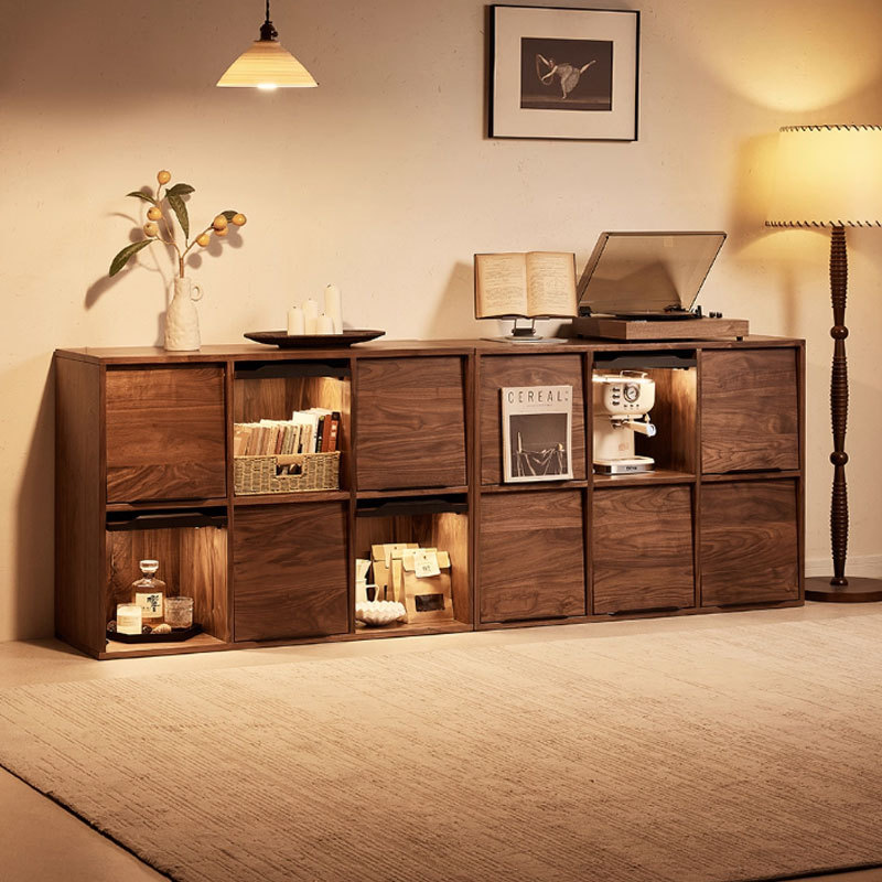 北美黑胡桃木书柜复古风自由组合柜北欧实木电视柜落地靠墙储物柜
