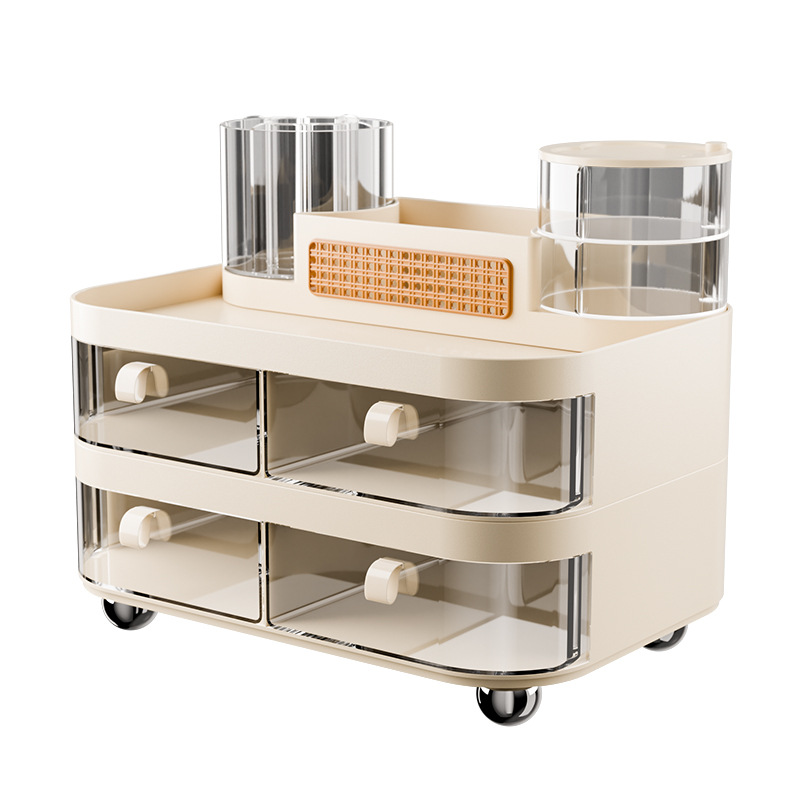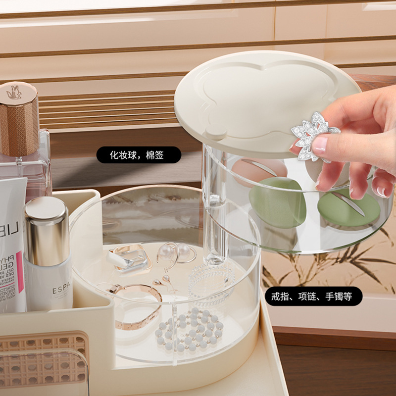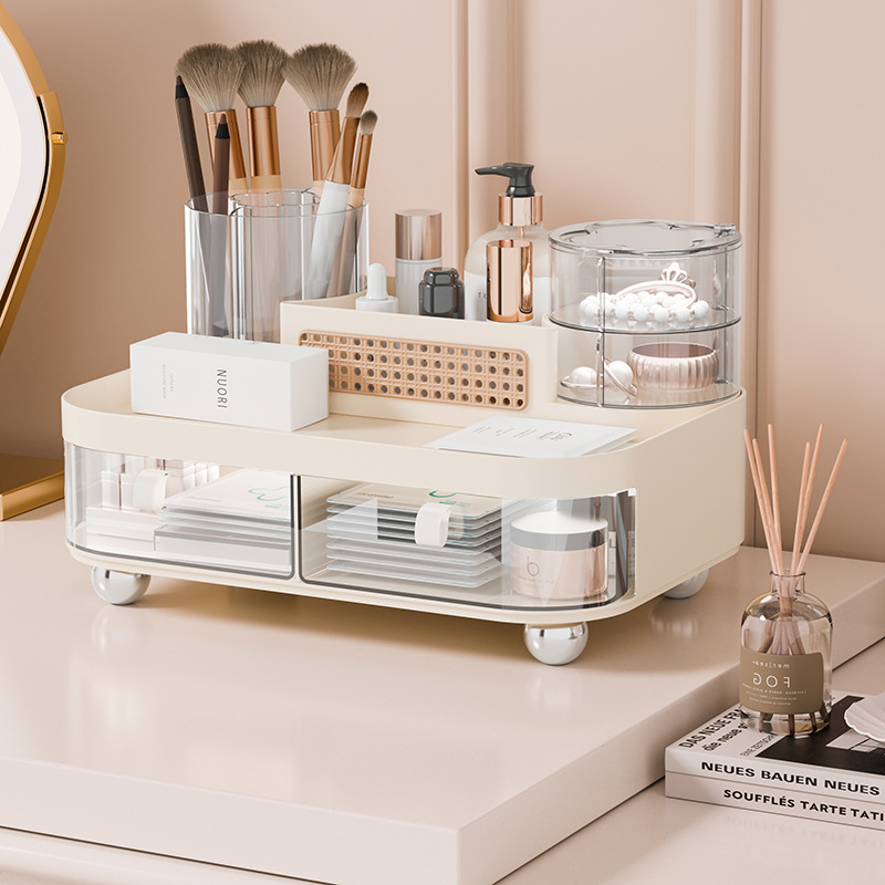 新款桌面化妆品置物架护肤品口红整理收纳盒抽屉式梳妆台化妆刷旋