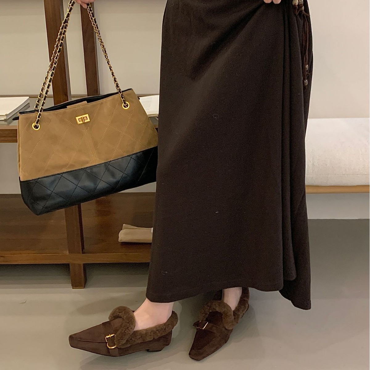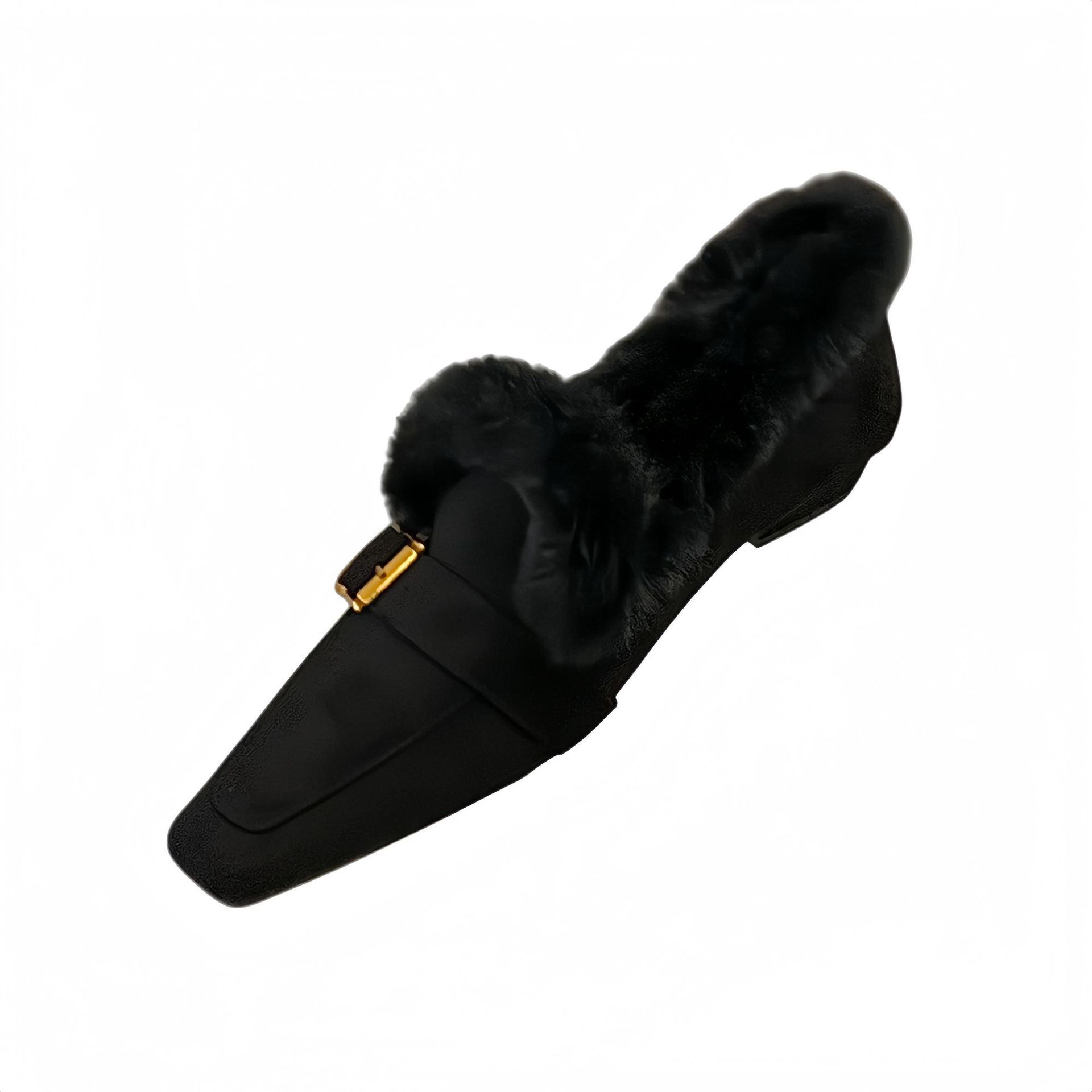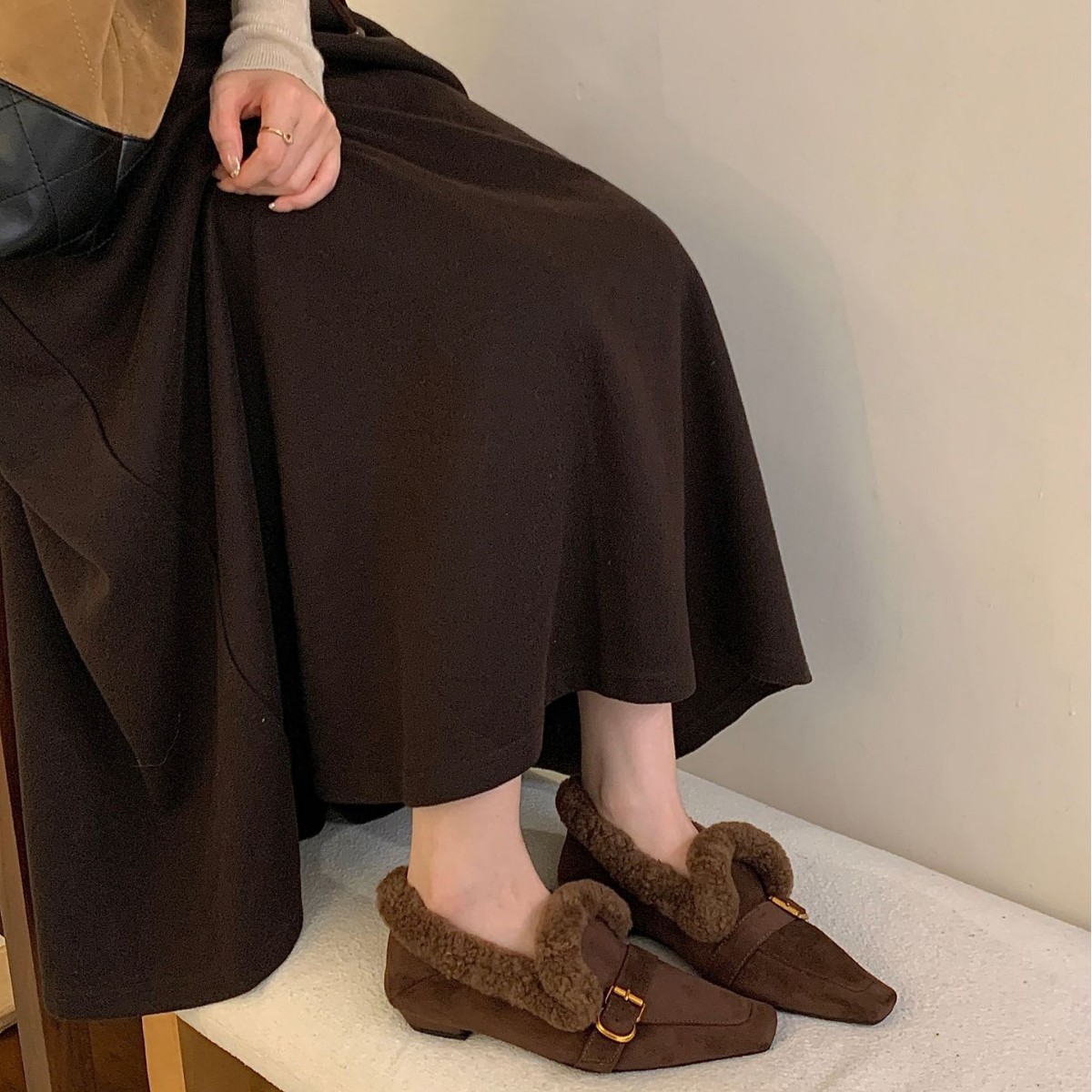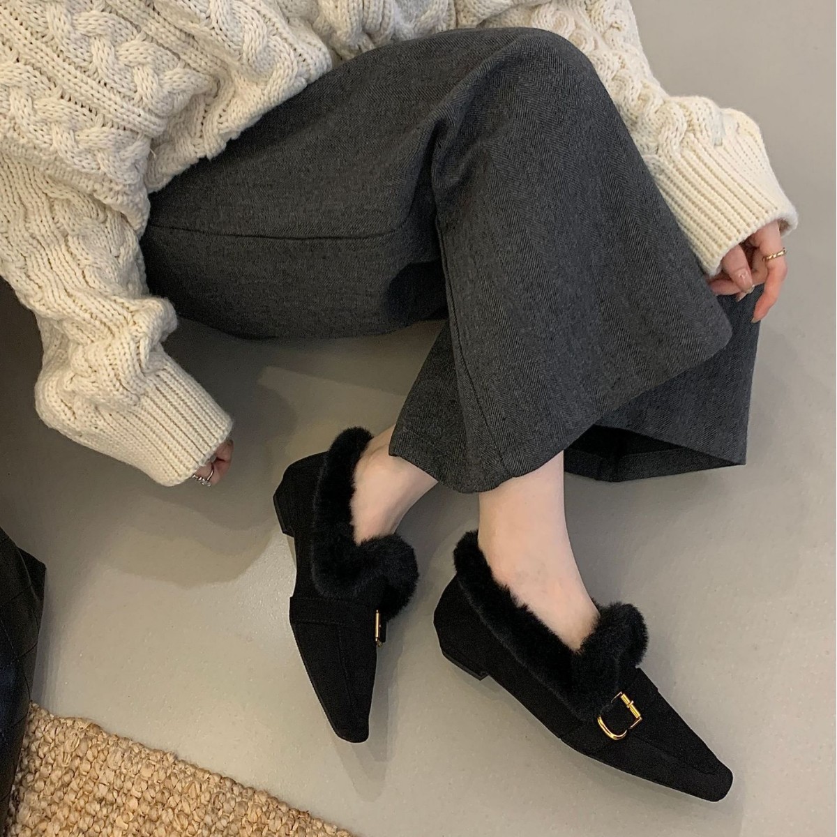 2025新款晚风小方头加绒毛毛鞋单鞋韩版秋冬款绒面时尚百搭毛毛鞋