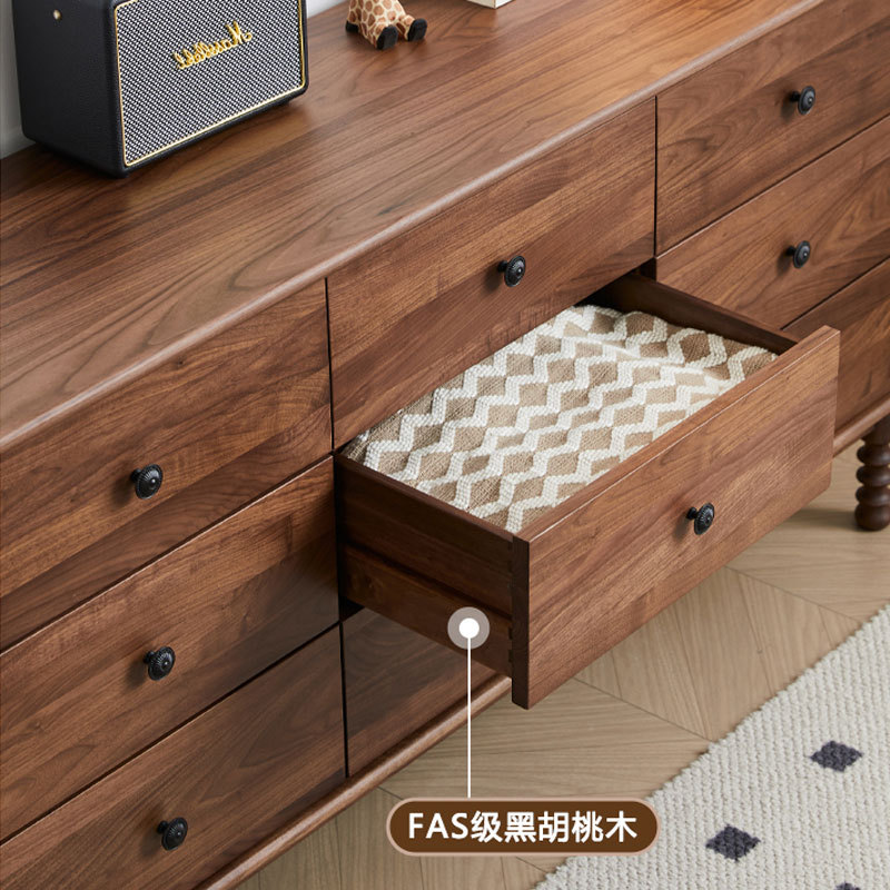 北美黑胡桃木斗柜北欧简约实木九斗柜卧室多功能储物柜可定制