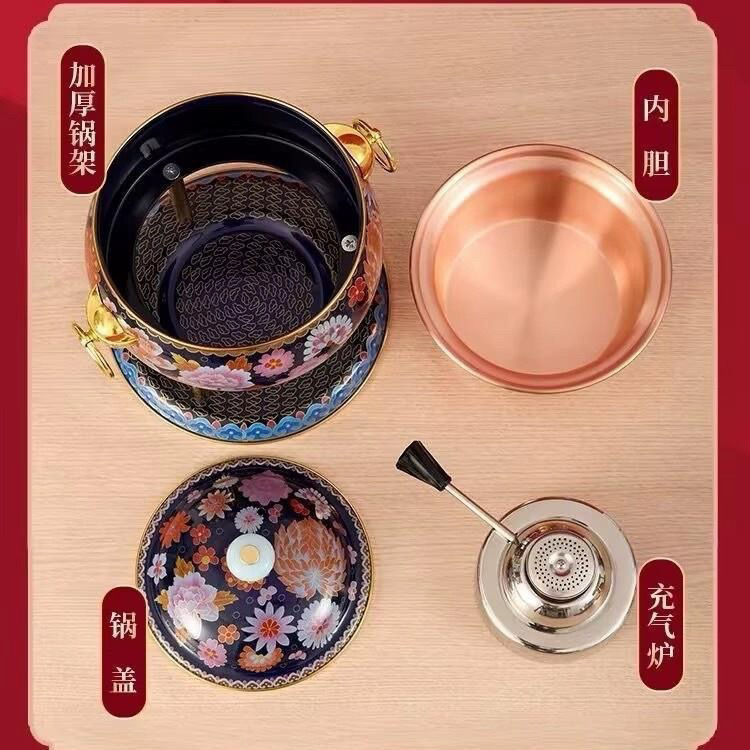 景泰蓝珐琅彩小火锅锅一瓦斯炉小型不锈钢铜火锅家用商用露营其他