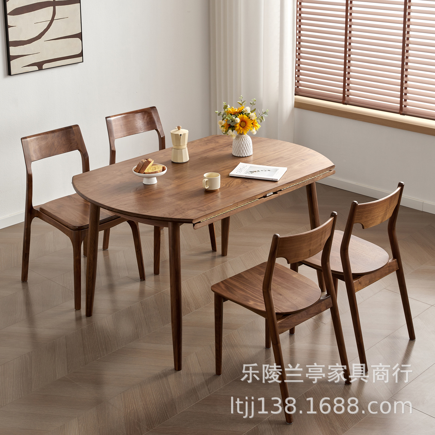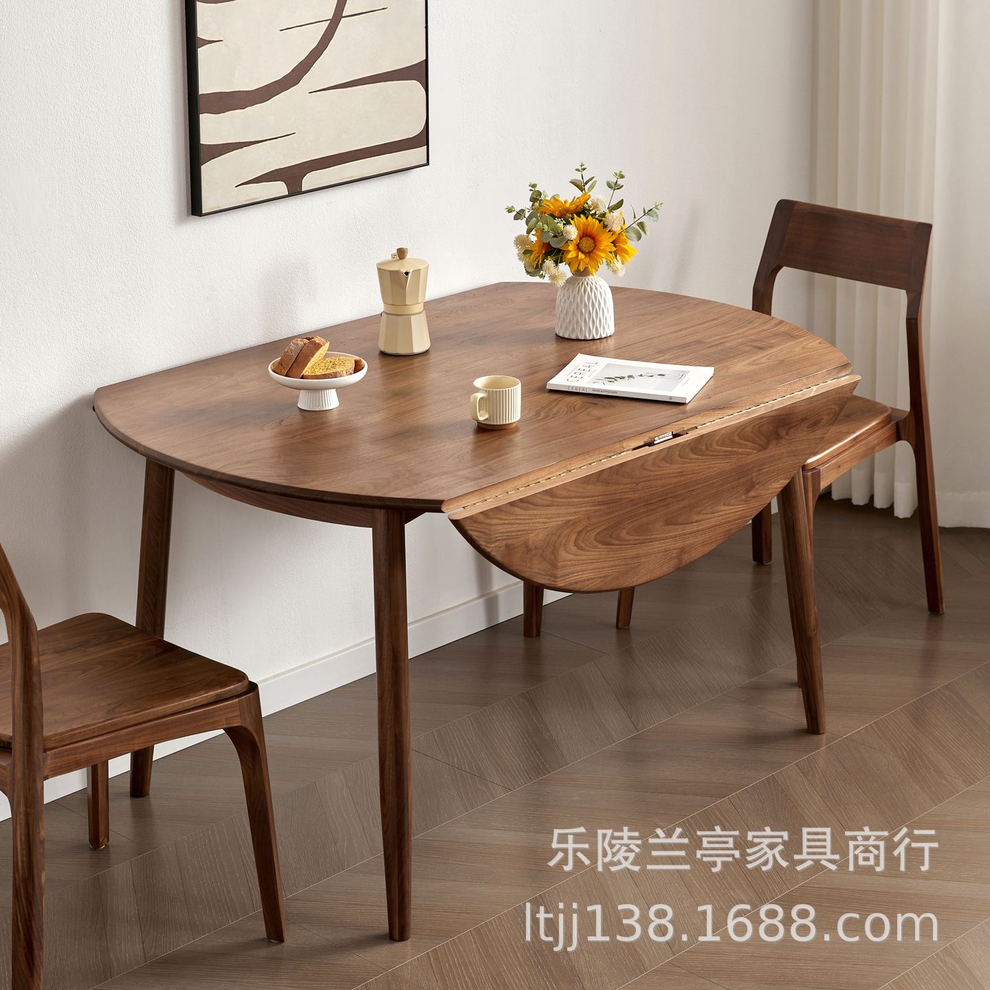 北美黑胡桃木全实木折叠餐桌简约樱桃木原木多动能家用折叠饭桌