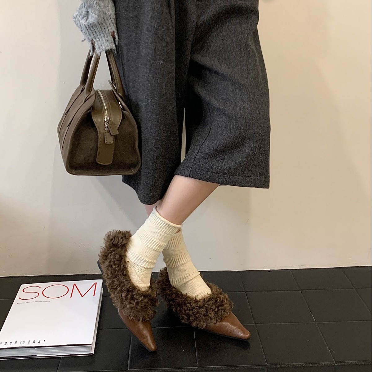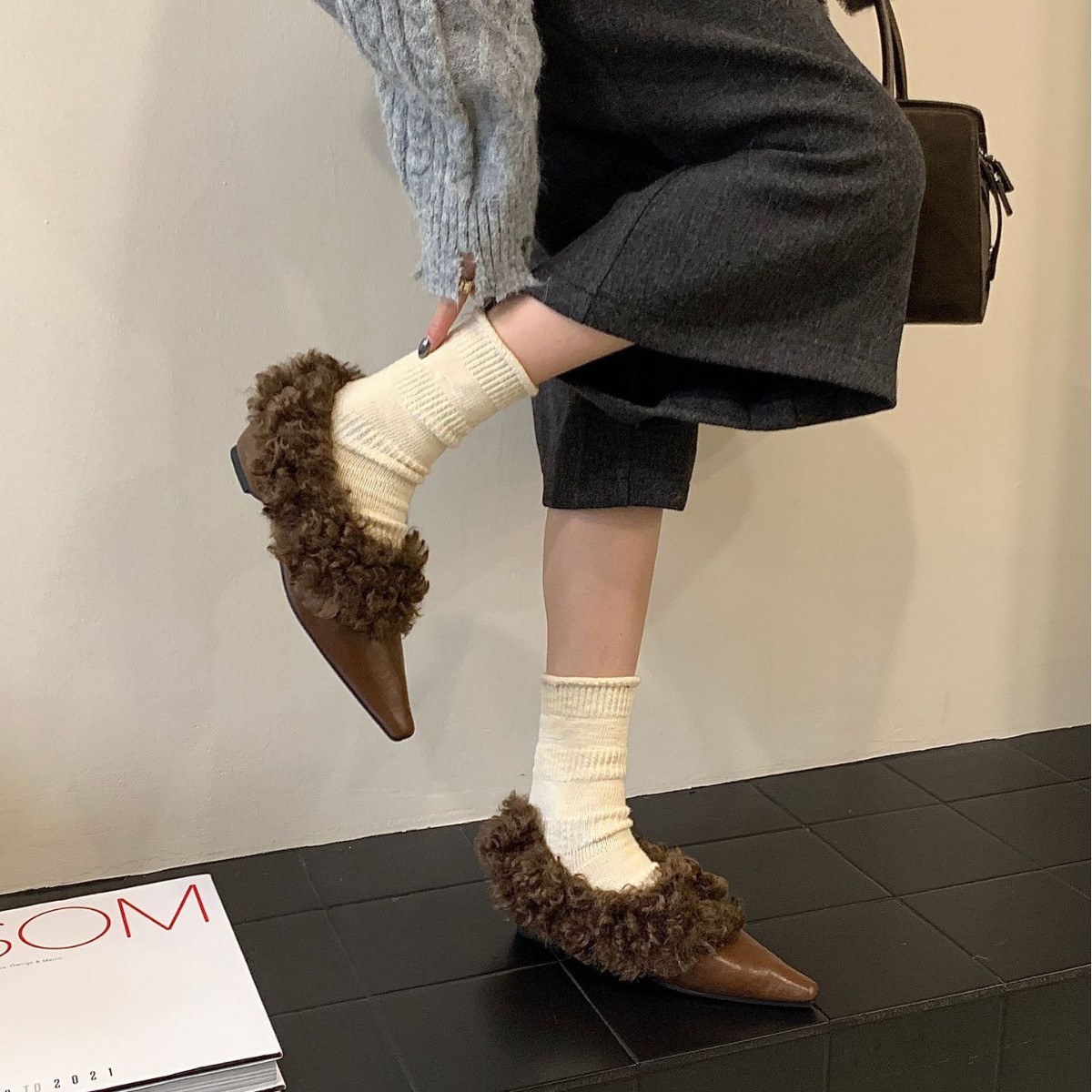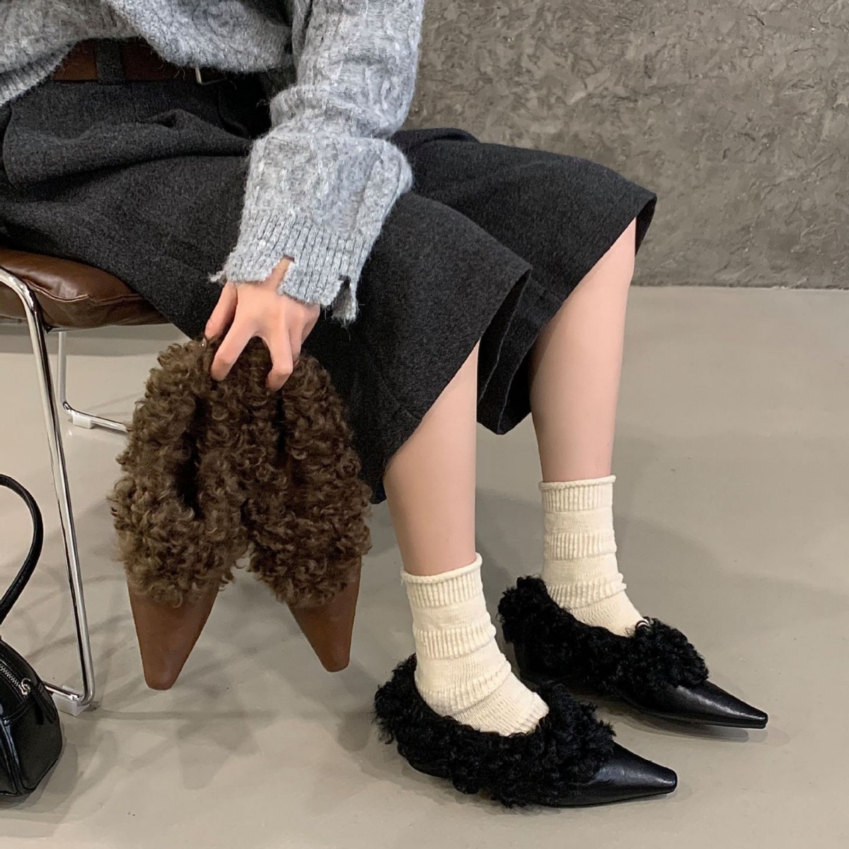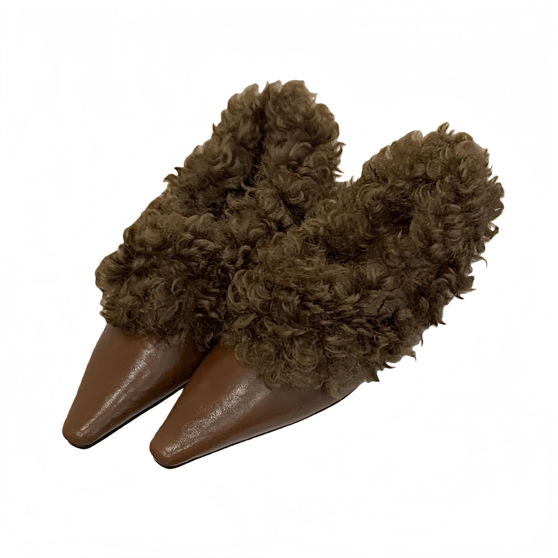 法式高级感方头小毛毛鞋2025皮质面加绒保暖棉鞋单鞋玛丽珍毛毛鞋