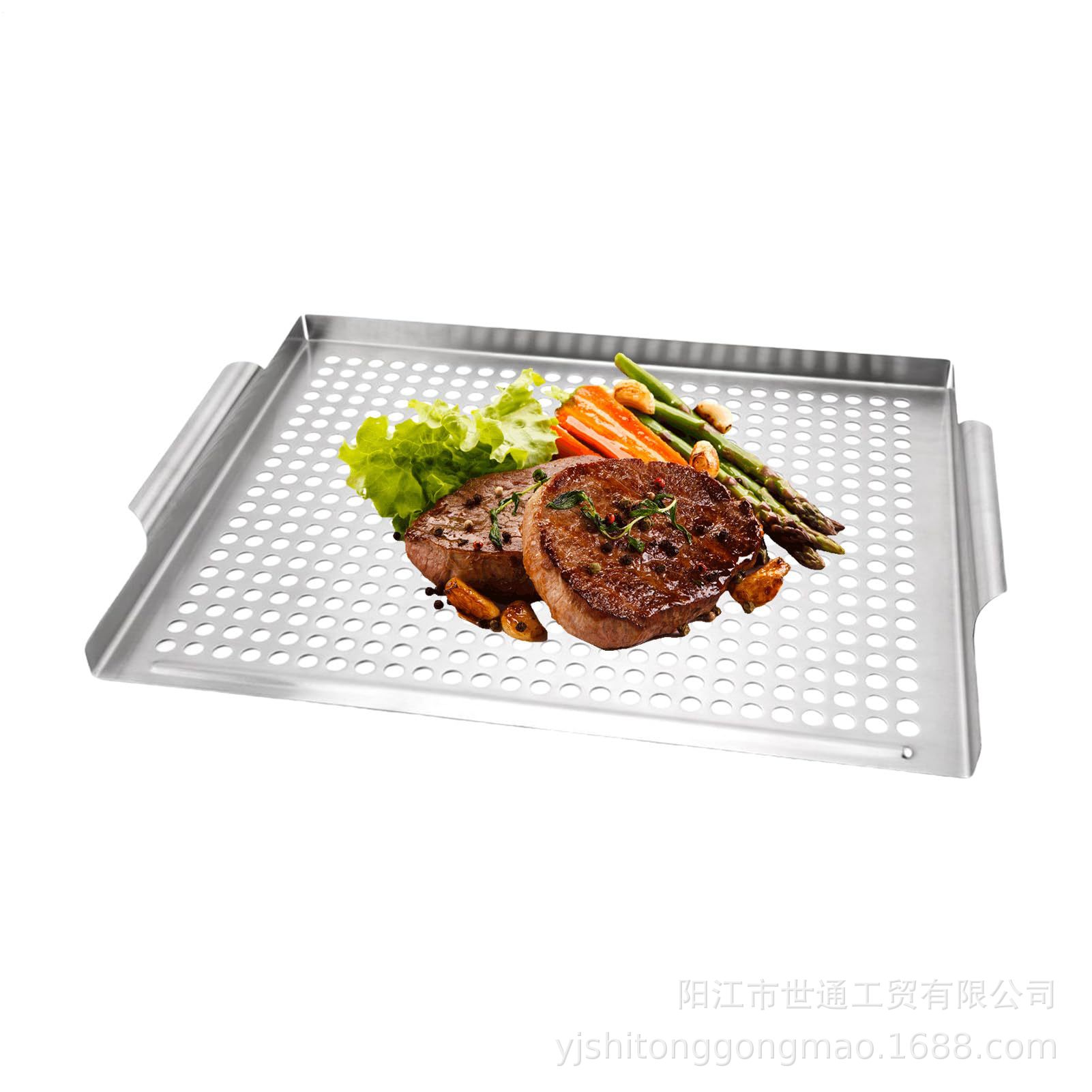 新款不锈钢烤肉盘 方形烧烤网盘用具 户外BBQ多用煎盘漏孔烤盘
