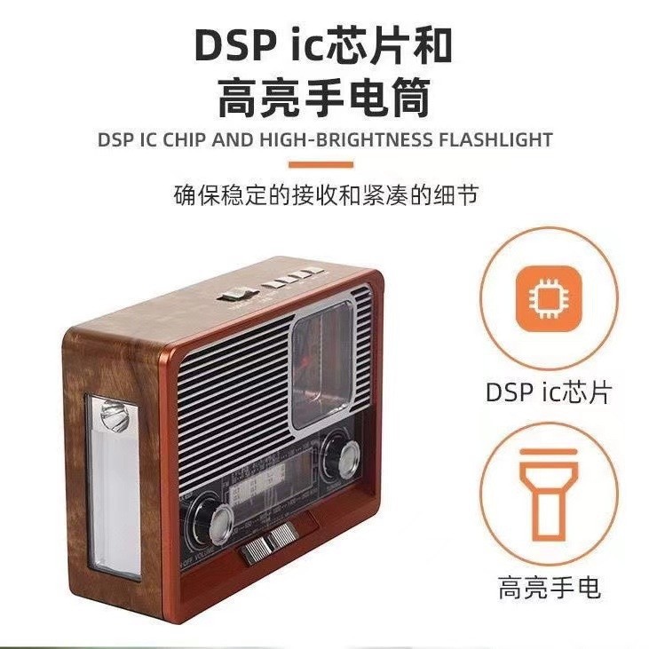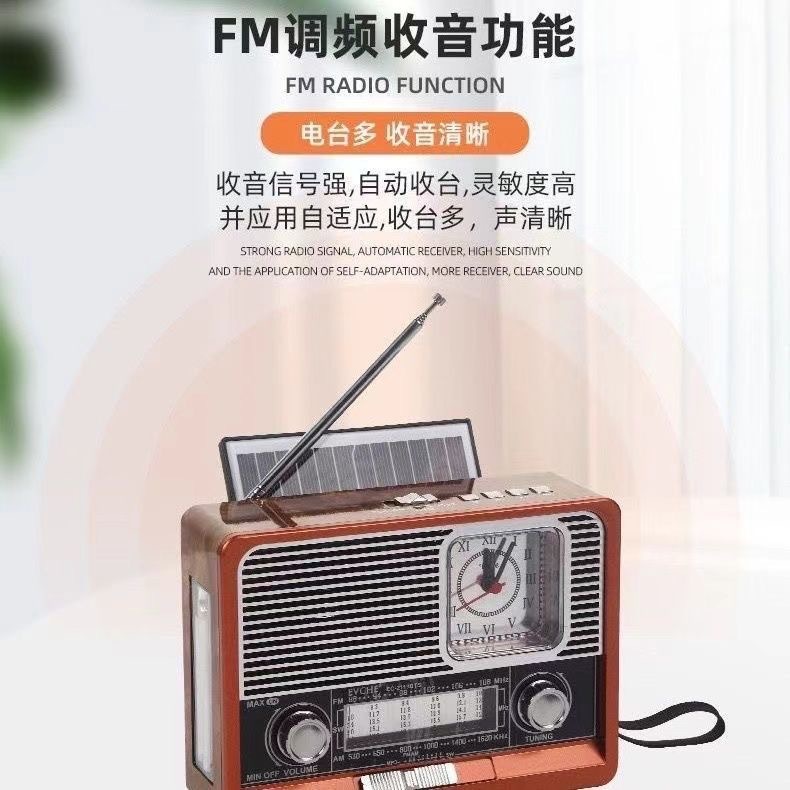 复古太阳能收音机多频短波蓝牙音响插卡U盘播放器时钟照明应急灯