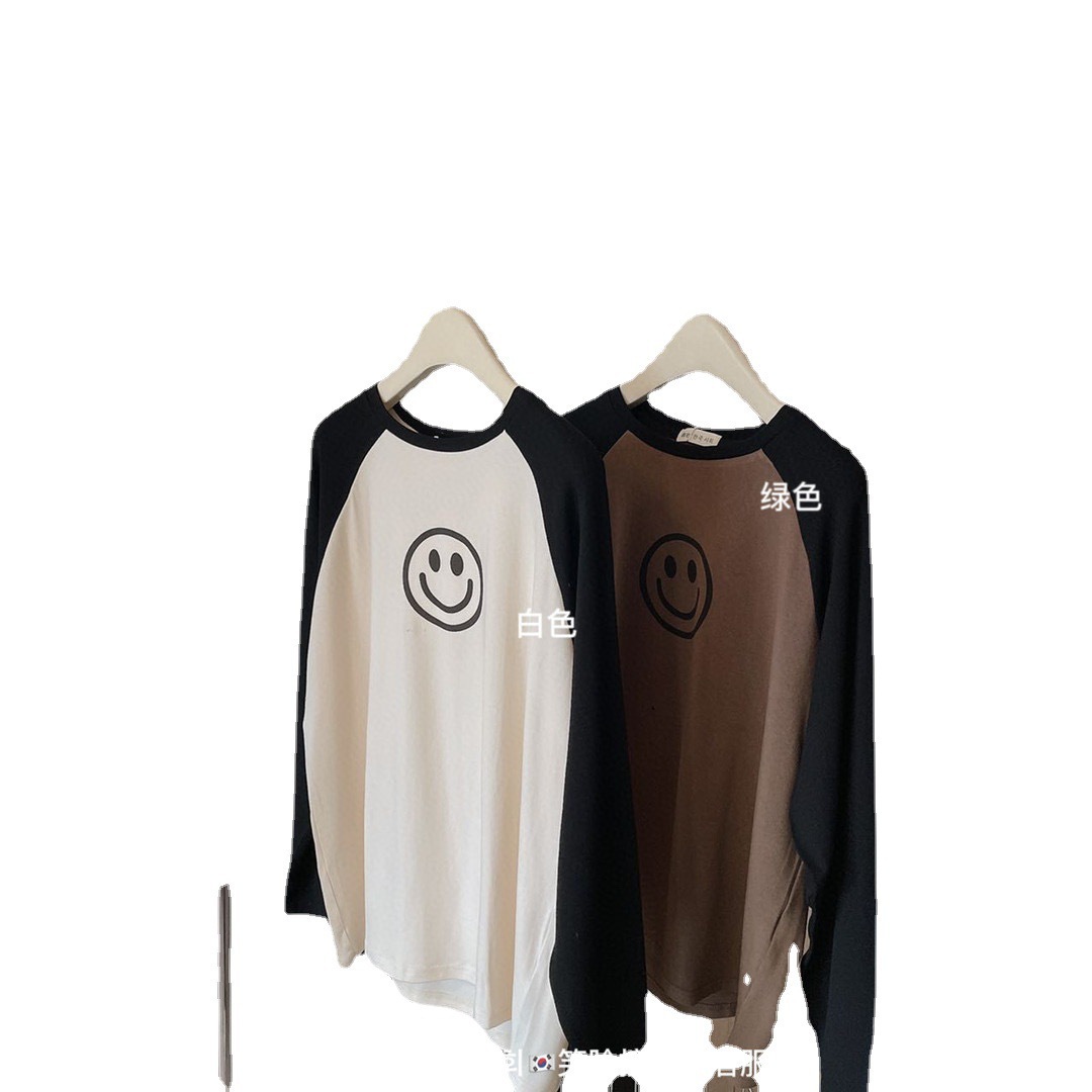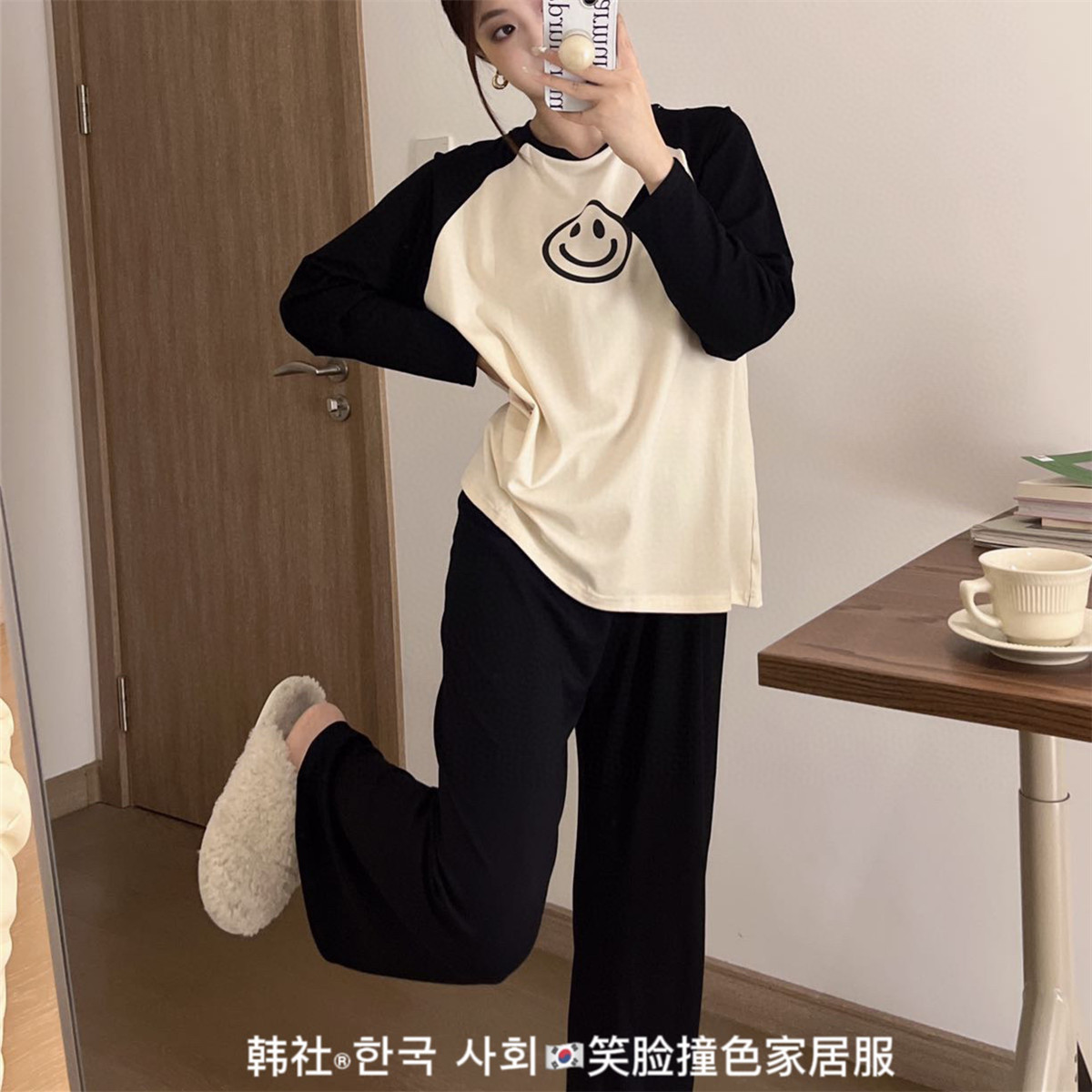 2023春秋新款韩社笑脸撞色居家服套装女简约休闲插肩袖睡衣两件套