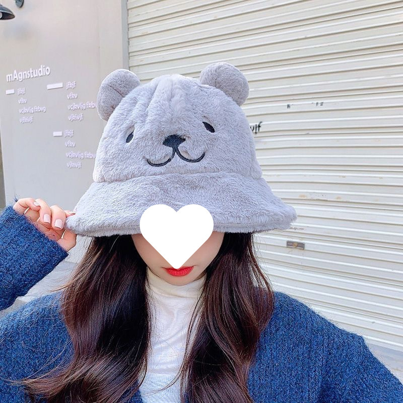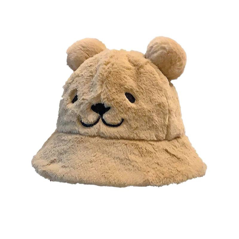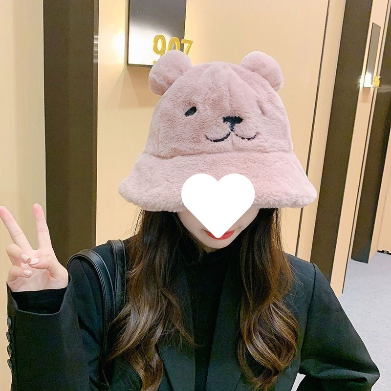 秋冬小熊耳朵毛绒渔夫帽女日系软妹甜美可爱学生百搭加厚保暖盆帽