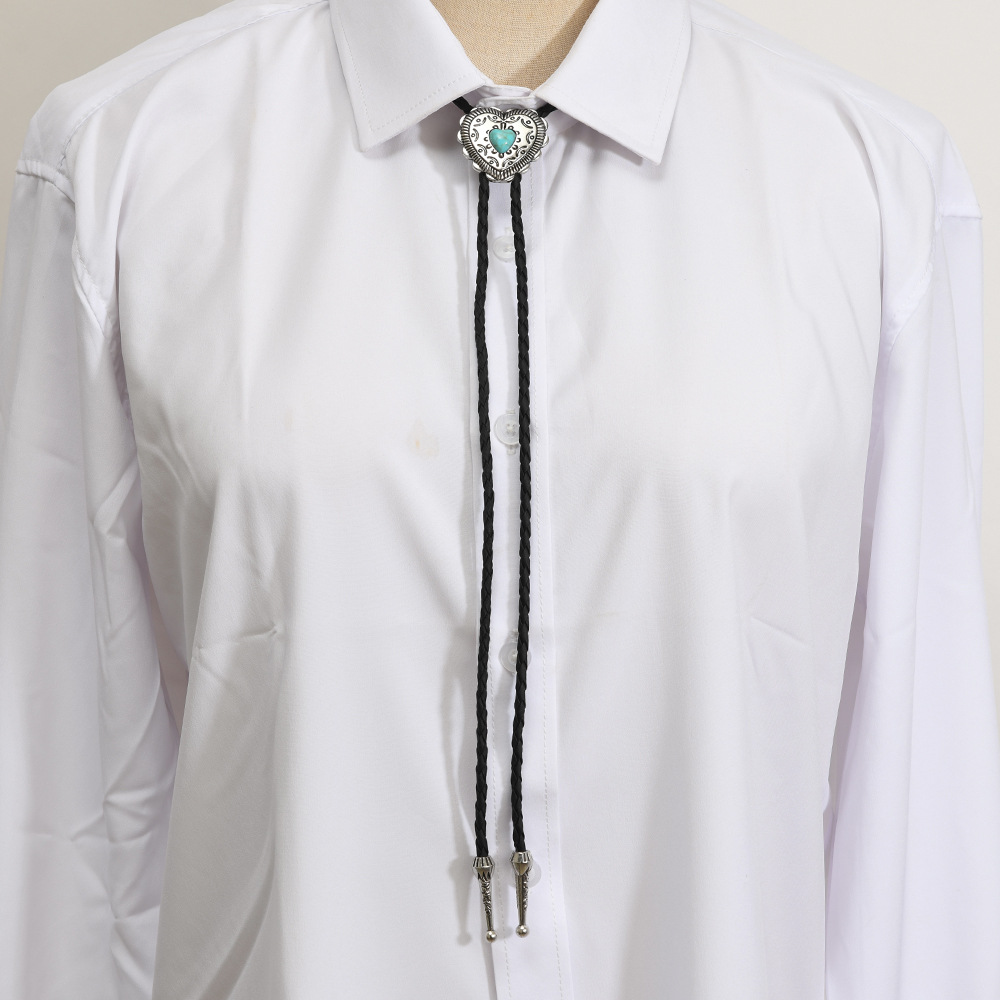 复古爱心蓝松石皮绳领结 男女通用西部风项链 锌合金吊坠百搭