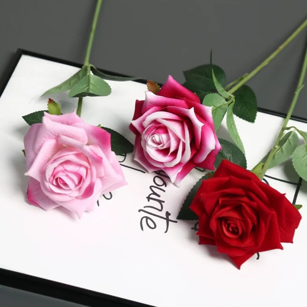 仿真花假花单头绒布玫瑰花婚礼堂花墙园林工程装饰花摄影道具跨境