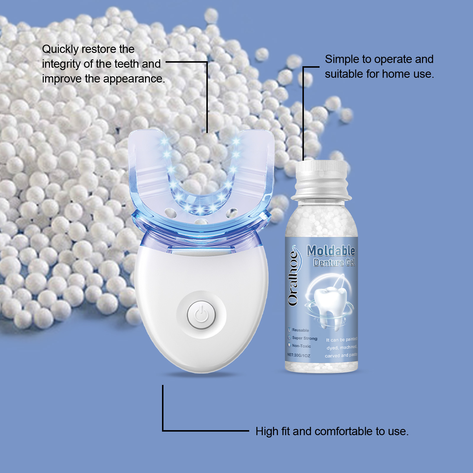 蓝光固化灯*1+可塑义齿凝胶:30g*1(仅供外贸出口销售,禁止国内销售,购买等同默认免责申明)