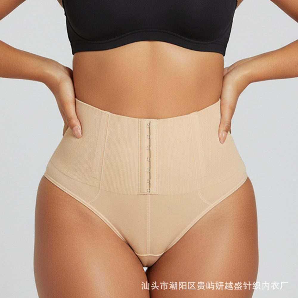 Women's thong shapewear前排扣高腰T裤无痕收腹提臀防卷边塑身裤