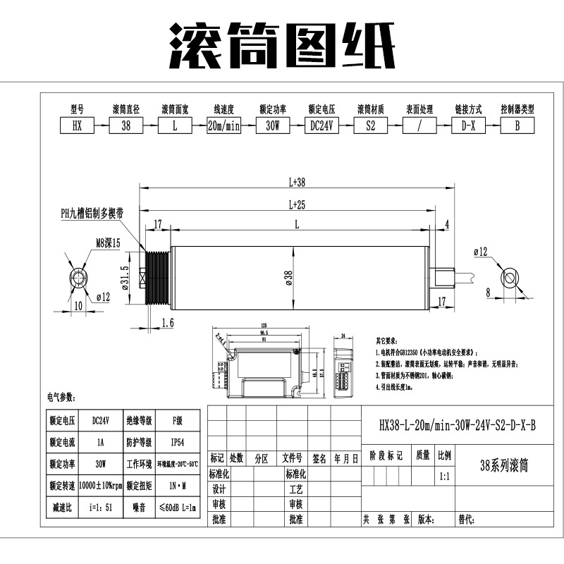 小直径38mm多楔带轮电动辊筒输送带流水线直流不锈钢镀锌电动滚筒