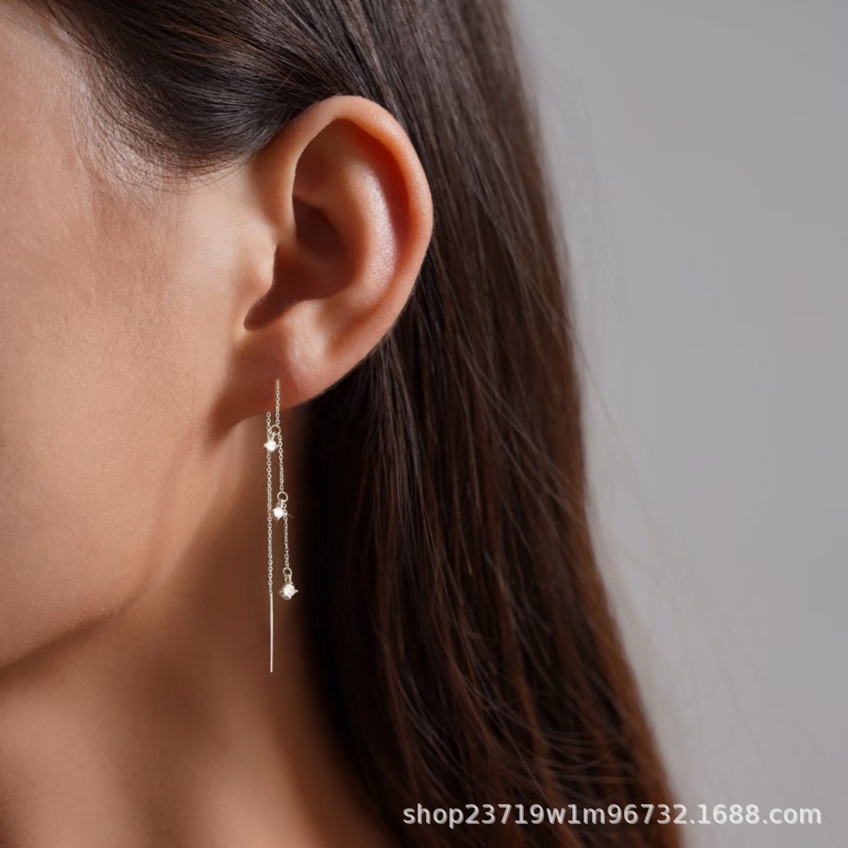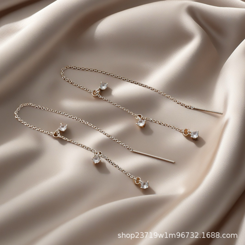 欧美跨境热销 真金黄铜电镀 时尚长流苏耳线镶锆石女士奢华耳环