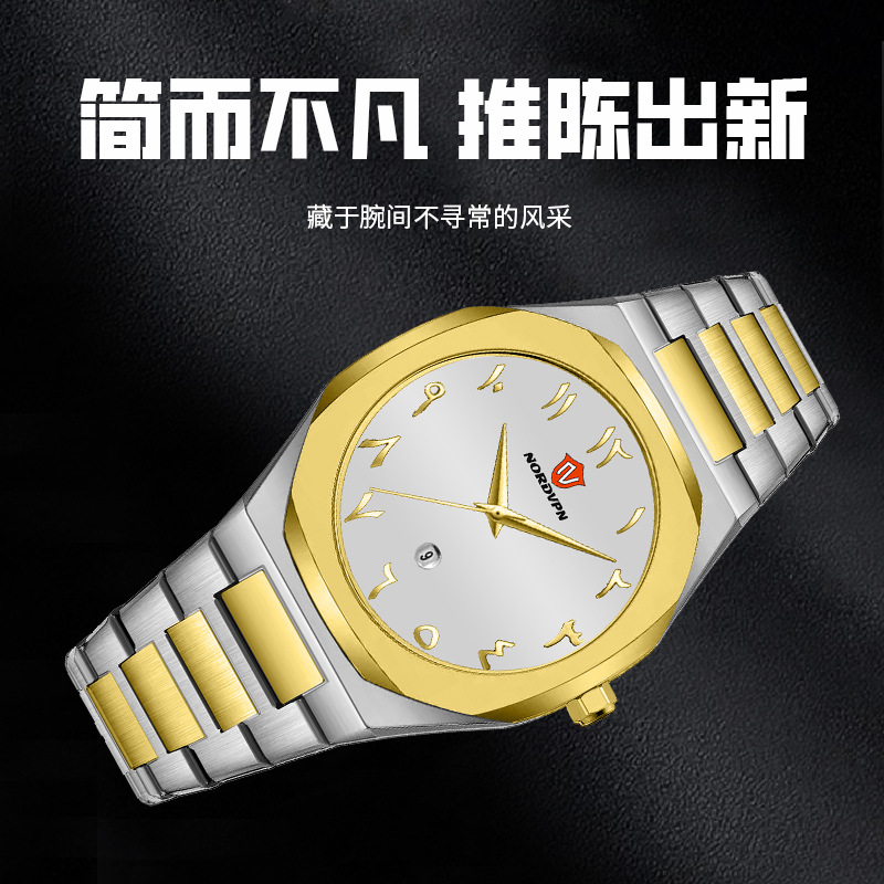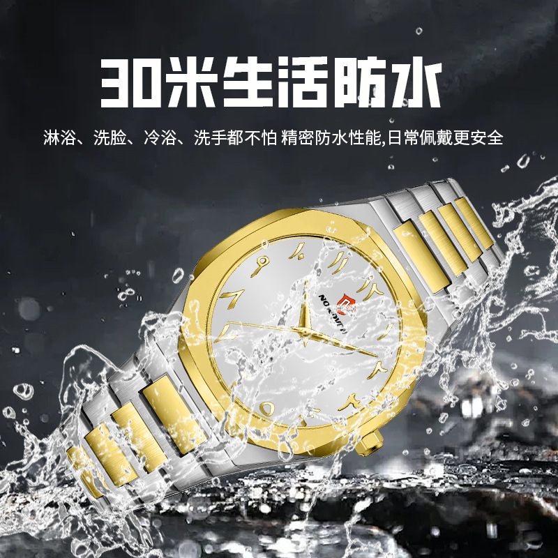 中东欧美爆款 商务轻奢男表个性表盘手表 防水钢带石英表跨境专供
