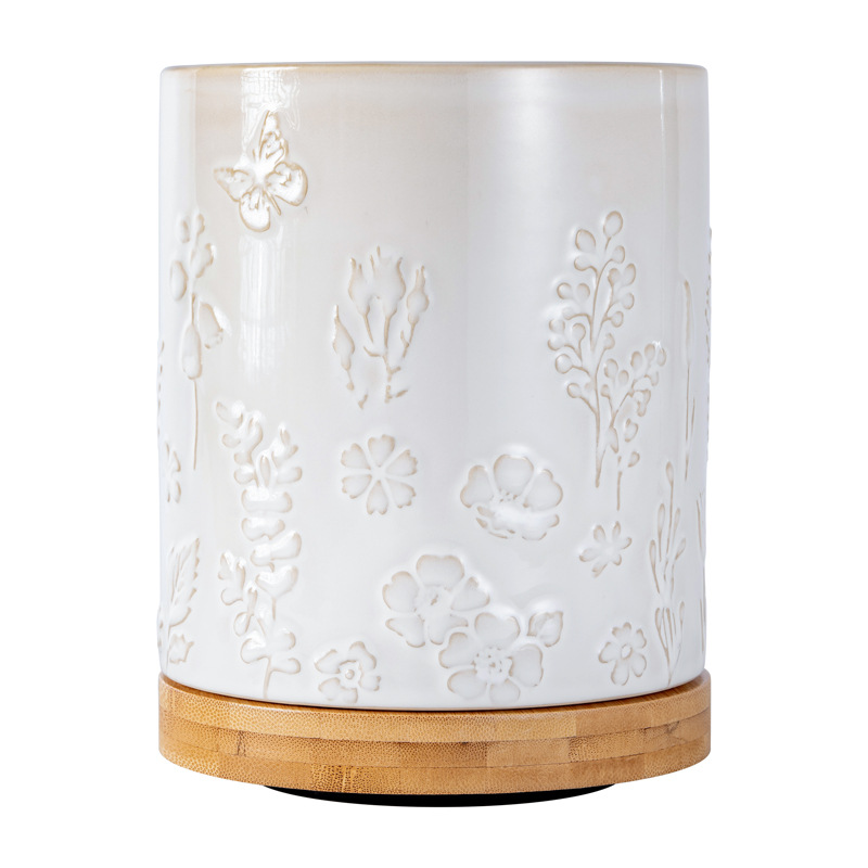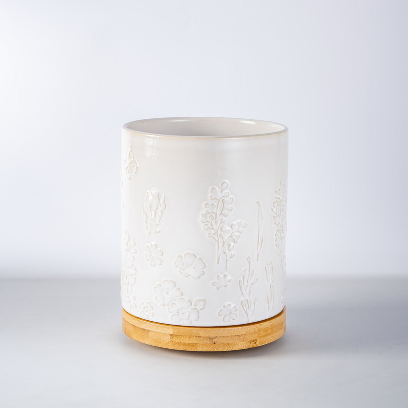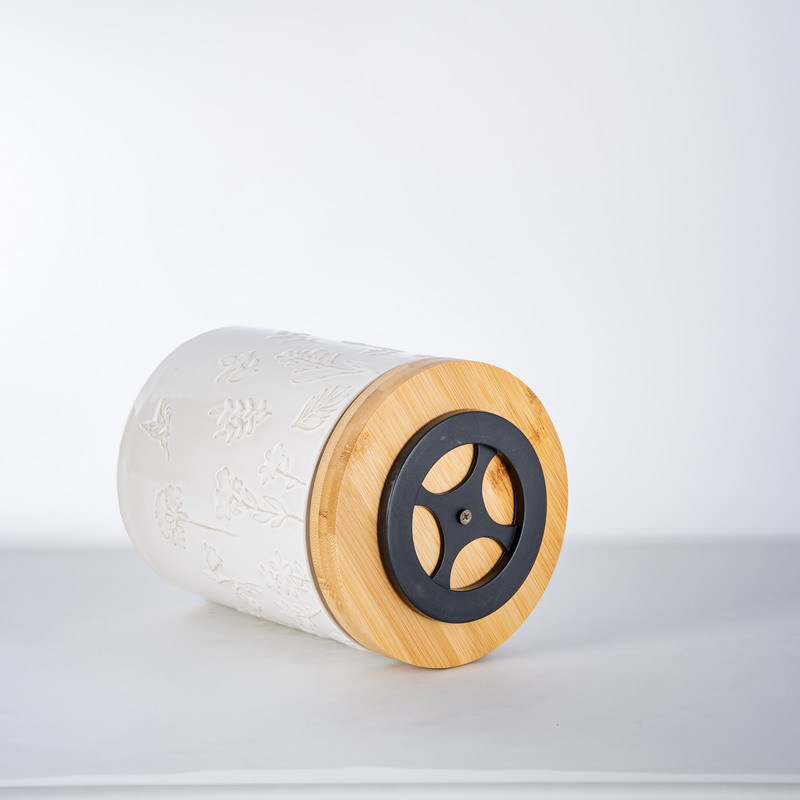北欧复古多功能厨房餐具收纳桶 可旋转浮雕陶瓷收纳筒窑变陶瓷桶