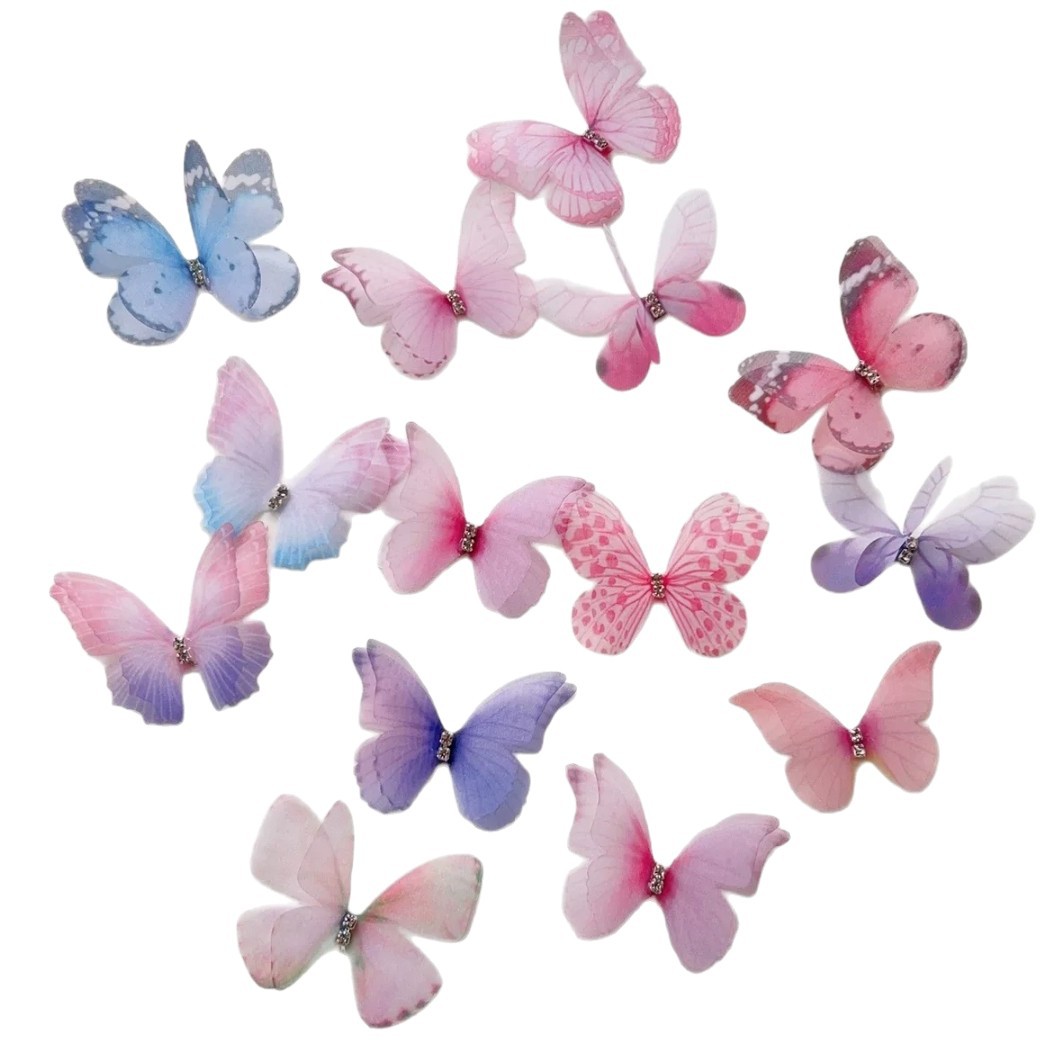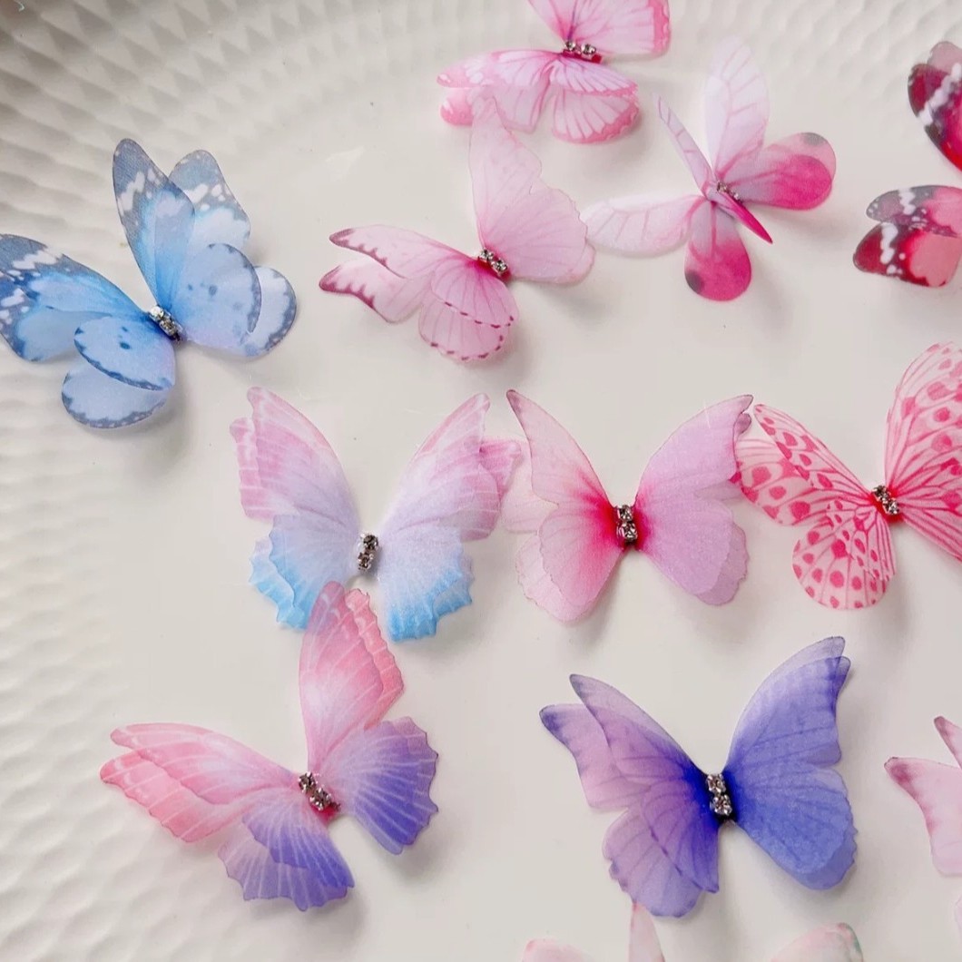 10cm双层网纱蝴蝶少女风装饰甜美小蝴蝶印花DIY手工头饰发饰配件