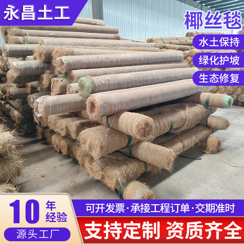 植物纤维毯生态毯矿山修复绿化边坡防护河道治理生态环保椰丝毯