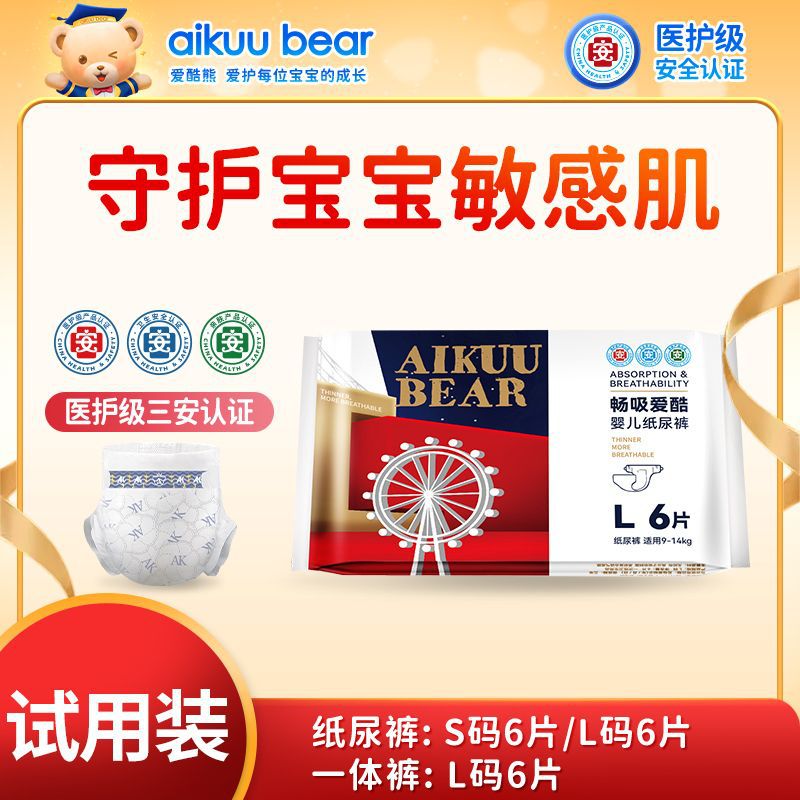 爱酷熊医护级全包臀一体裤婴儿透气尿不湿体验装