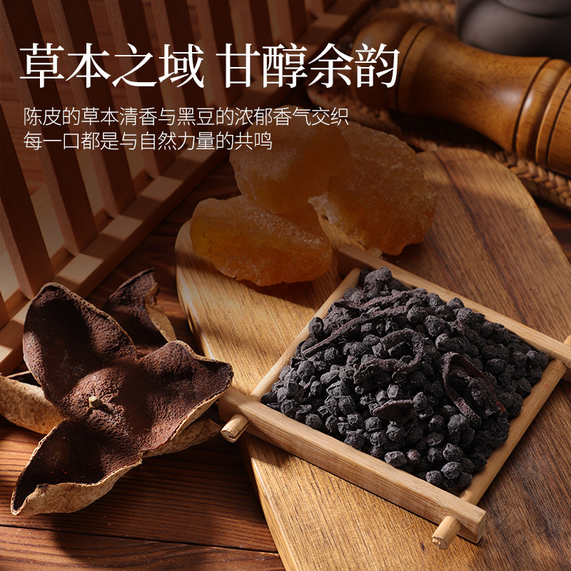 储藏方法 | 常温 | | 原料和配料 | 陈皮、黑豆、冰糖、食用盐 |