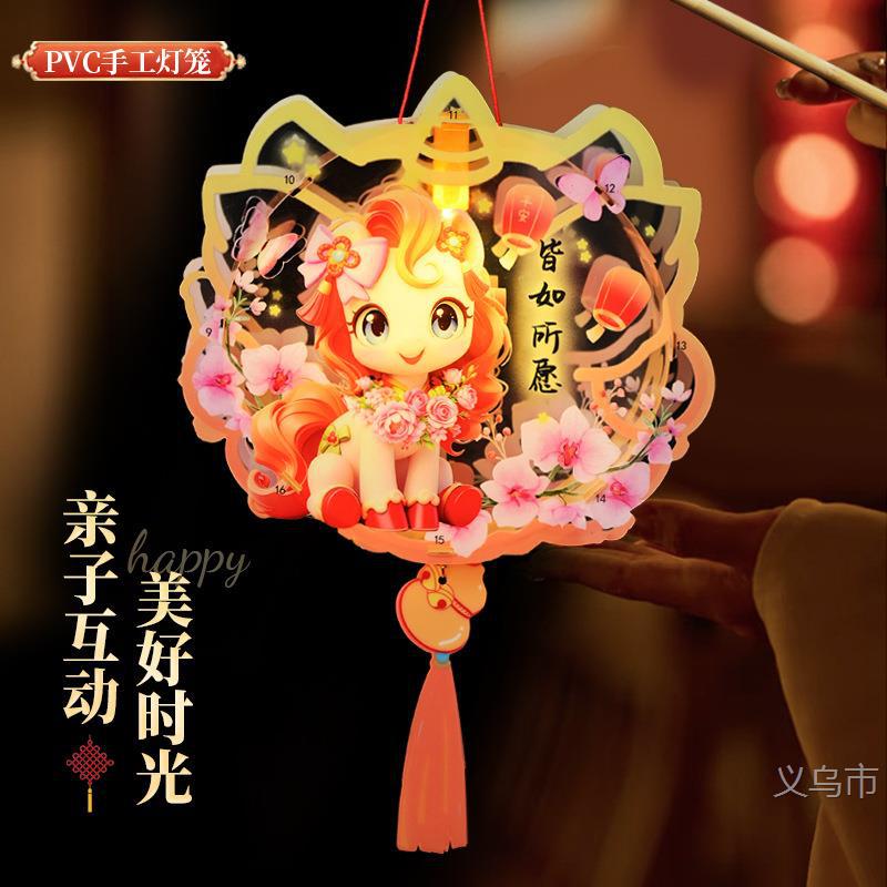 2026年新款灯笼装饰手提发光卡通花灯手工diy春节花二娃2511