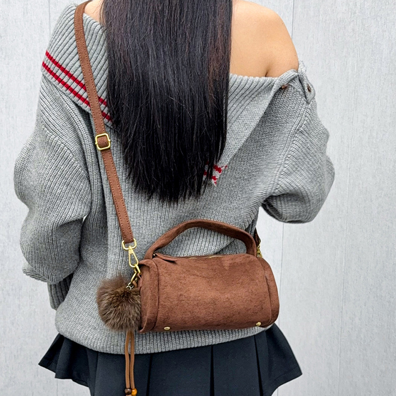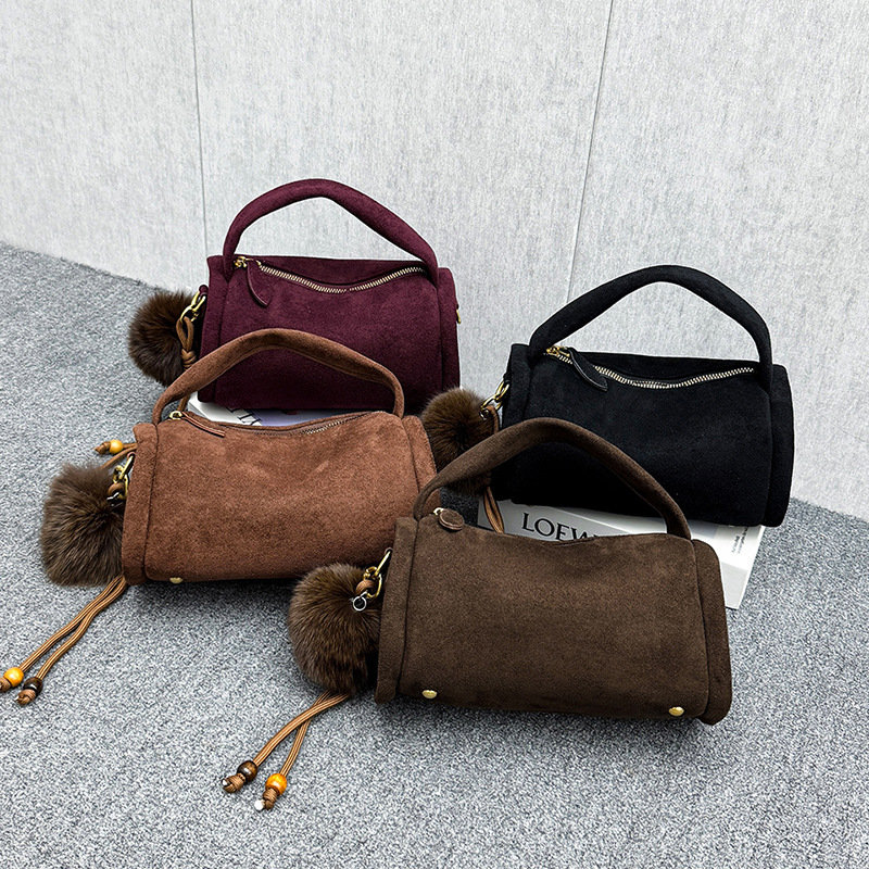 手提包女士包包美拉德色系麂皮绒极简风枕头包高颜值手提通勤包