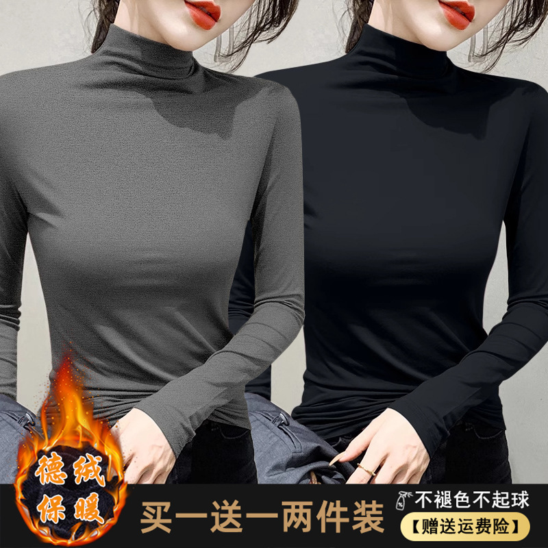 打底衫女2025新款春秋冬黑色德绒长袖T恤半高领上衣女内搭