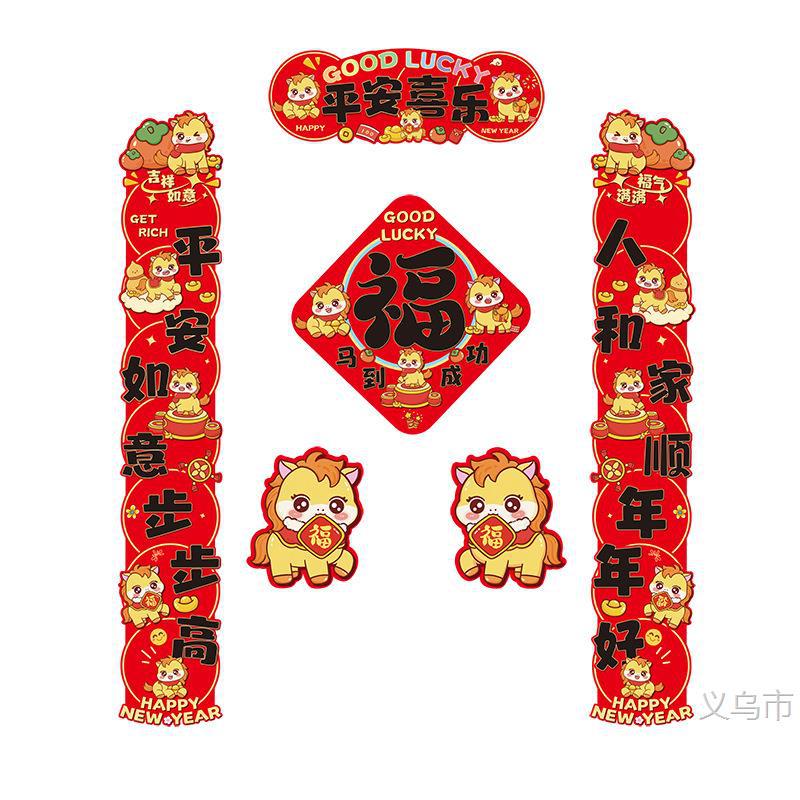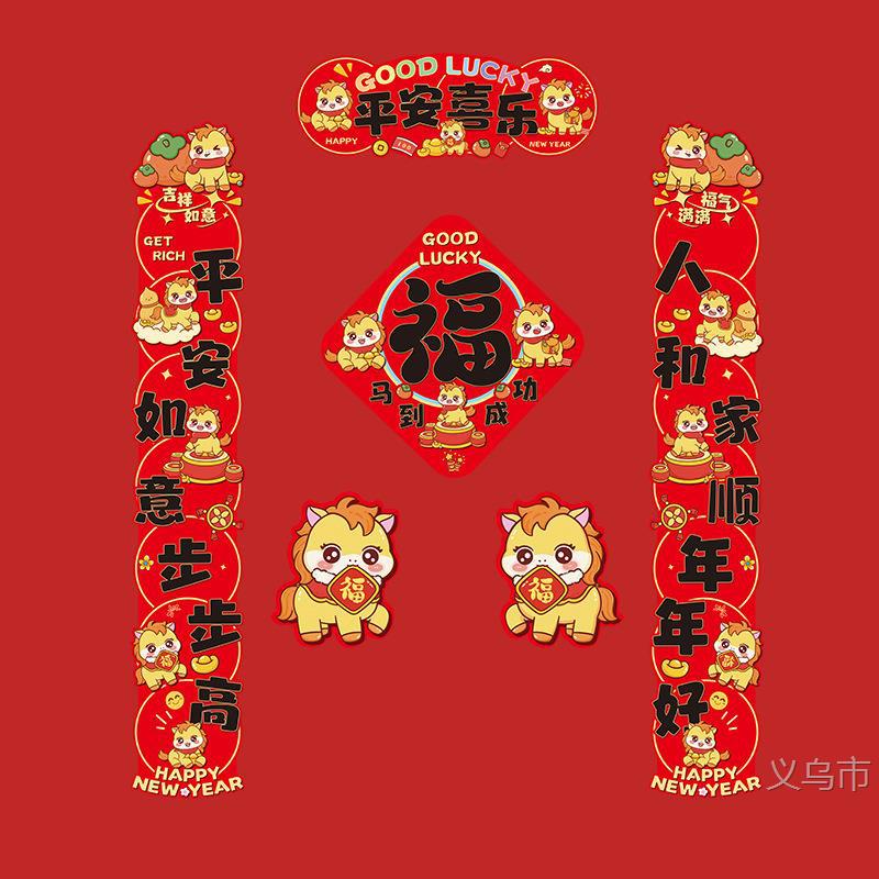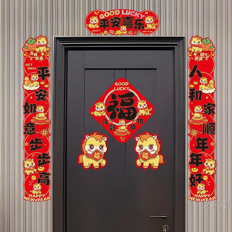 新款马年对联春联福字新年春节过年创意门联装饰可爱卡通过年门贴