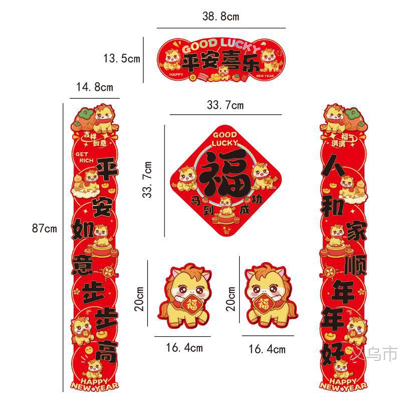尺寸 | 马年对联-八方来财款 | | 尺寸 | 马年对联-五福临门款 |