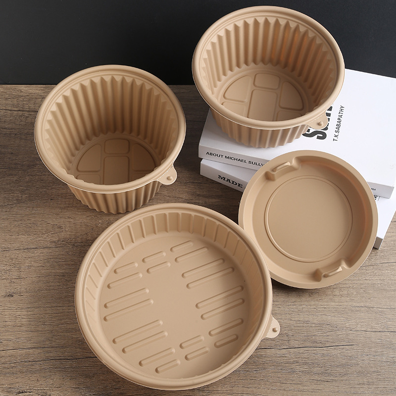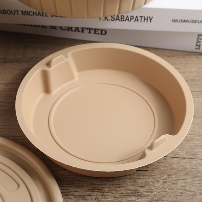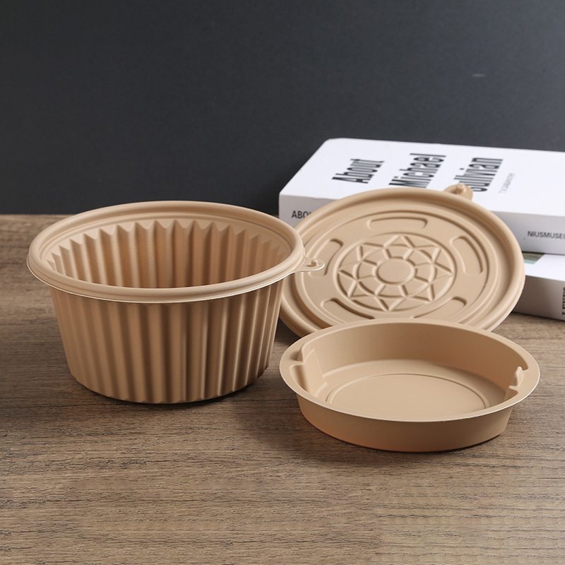 新品一次性餐盒可降解外卖圆形打包盒食品碗饭盒可餐具环保
