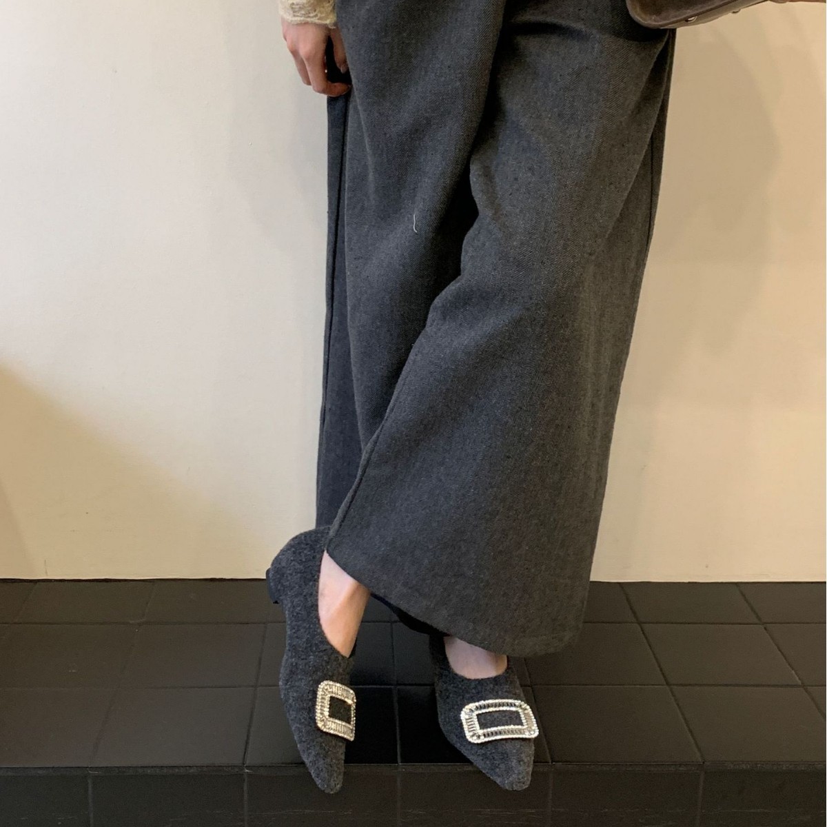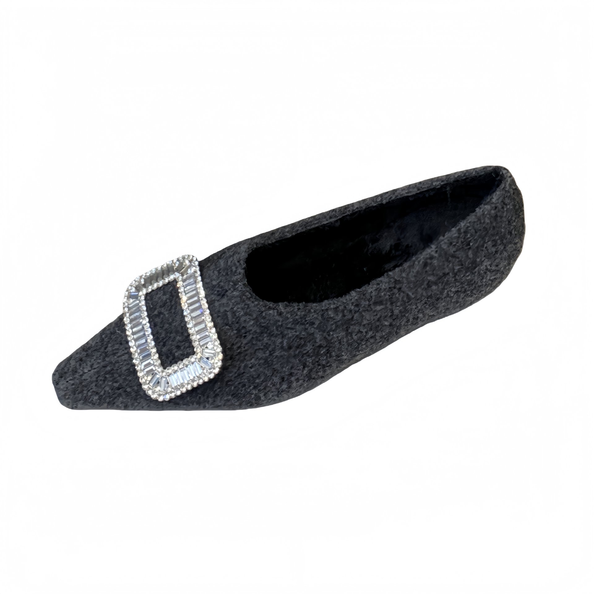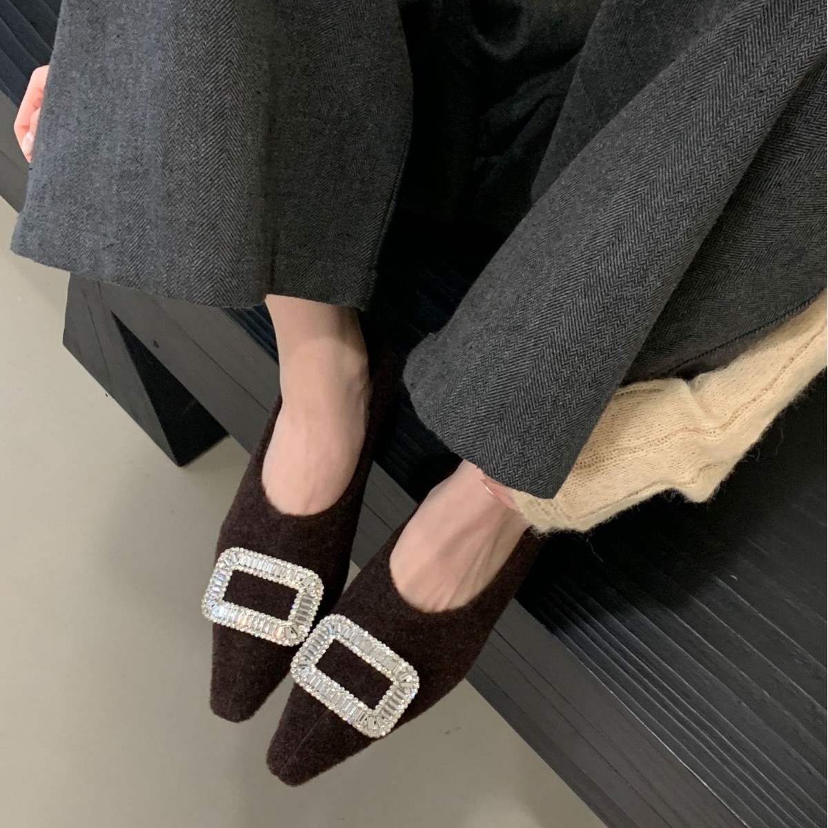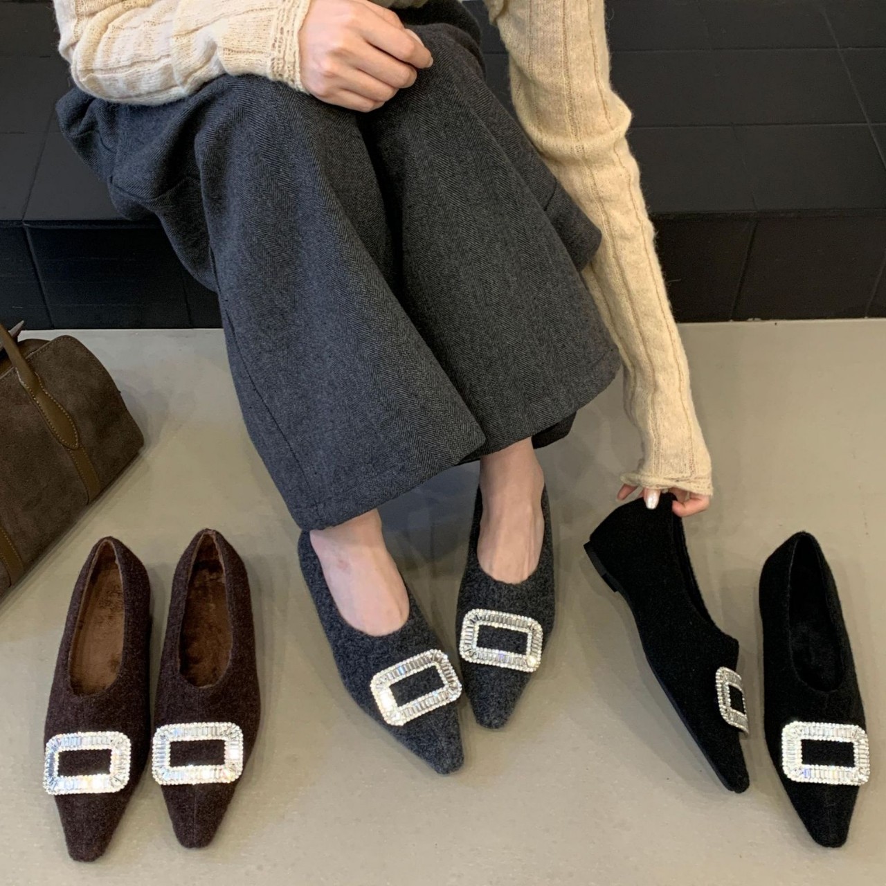 法式方头坡跟水钻饰棉鞋2025新款秋冬季加绒毛毛鞋时尚气质通勤鞋