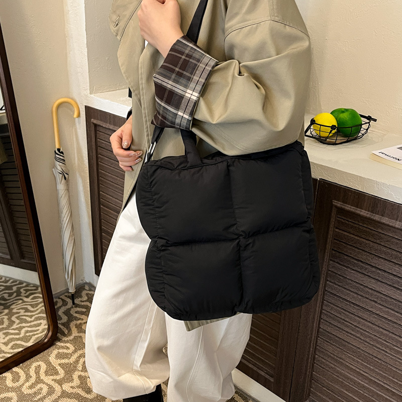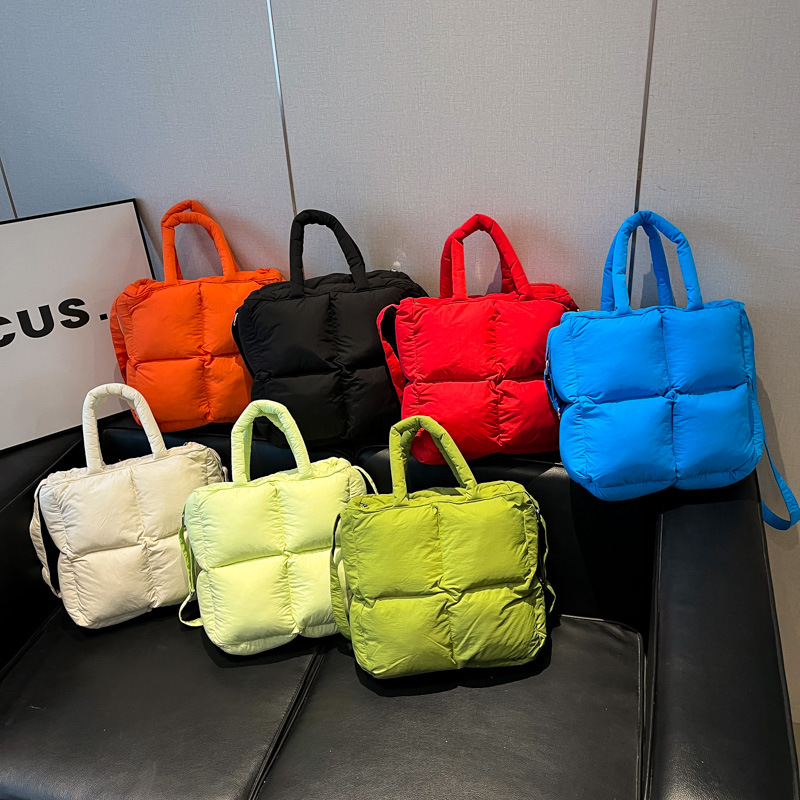跨境韩版新款棉服包羽绒包轻便柔软方块单肩包手提包时尚女包秋冬