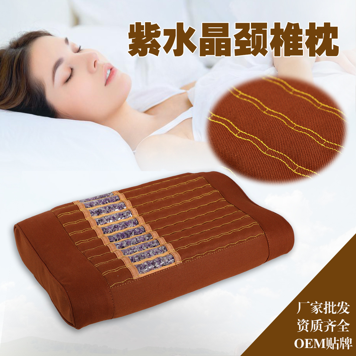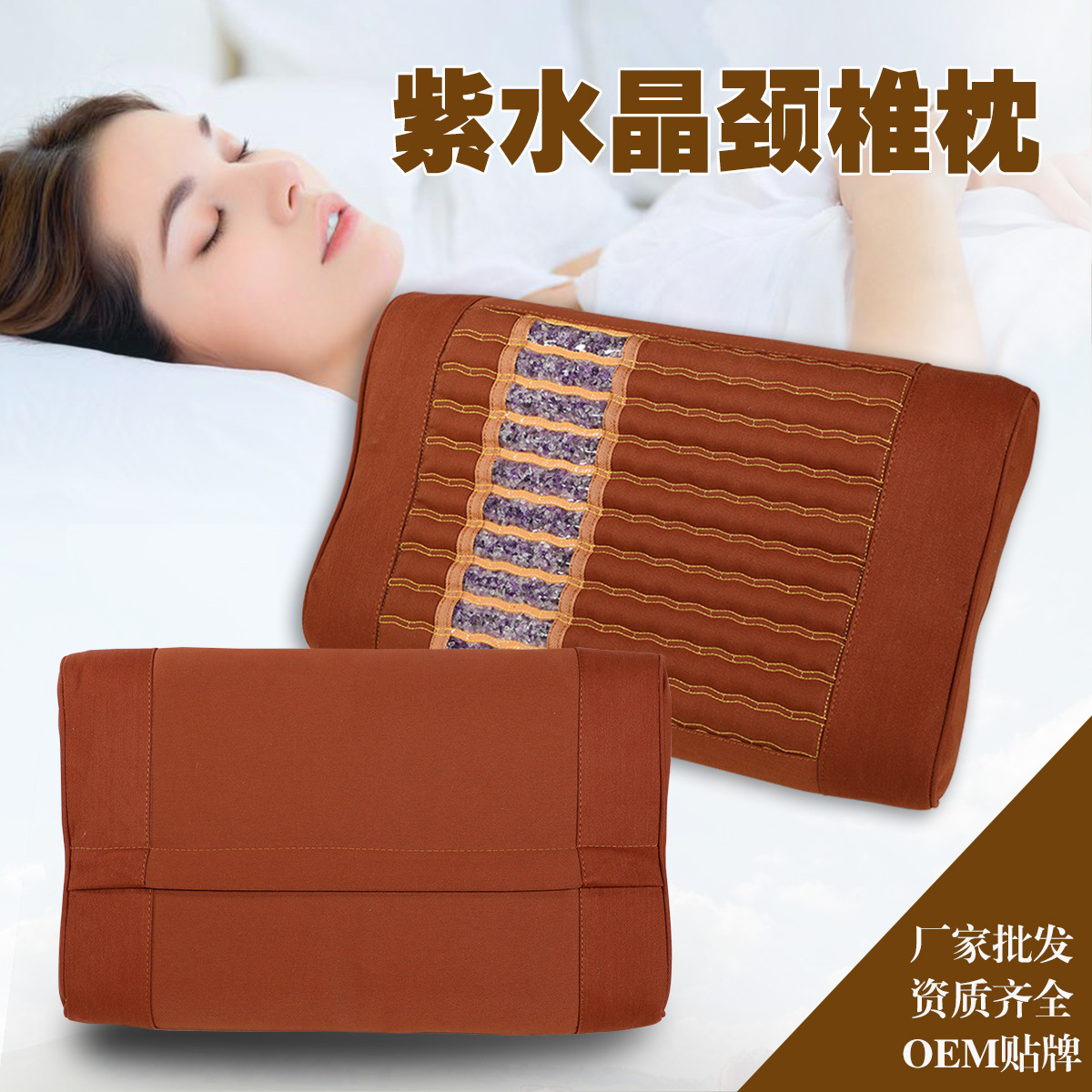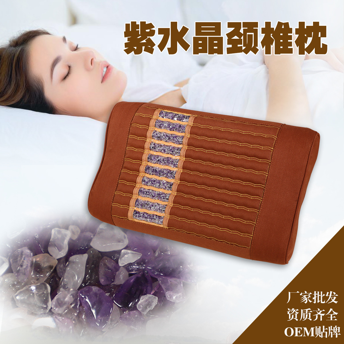 紫水晶玉石托玛琳砭石红玛瑙加热颈椎枕冬季呵护宝温控枕头