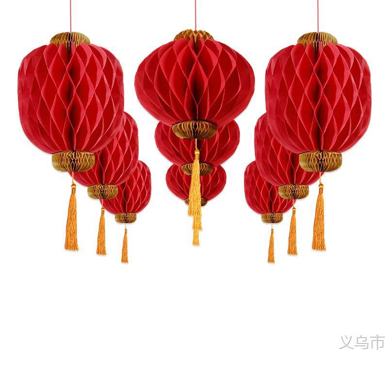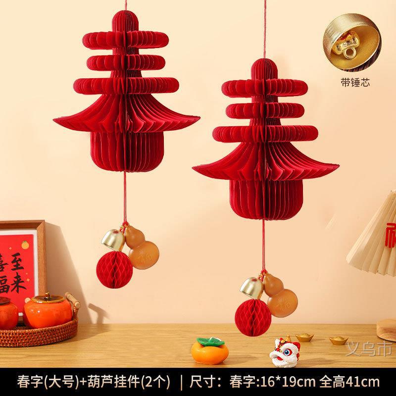 新年春节过年纸灯笼挂饰布置马年壁挂门挂件蜂窝灯笼葫芦春字铃铛