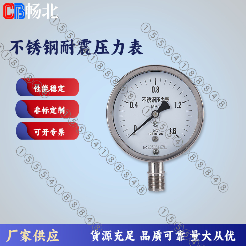 畅北厂家直销全不锈钢高精度YE100径向水压液压耐震工业压力表