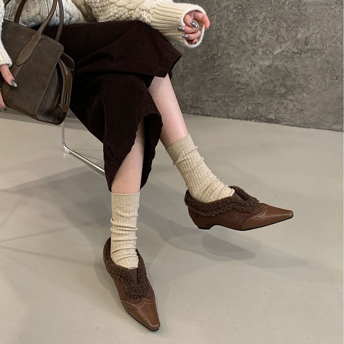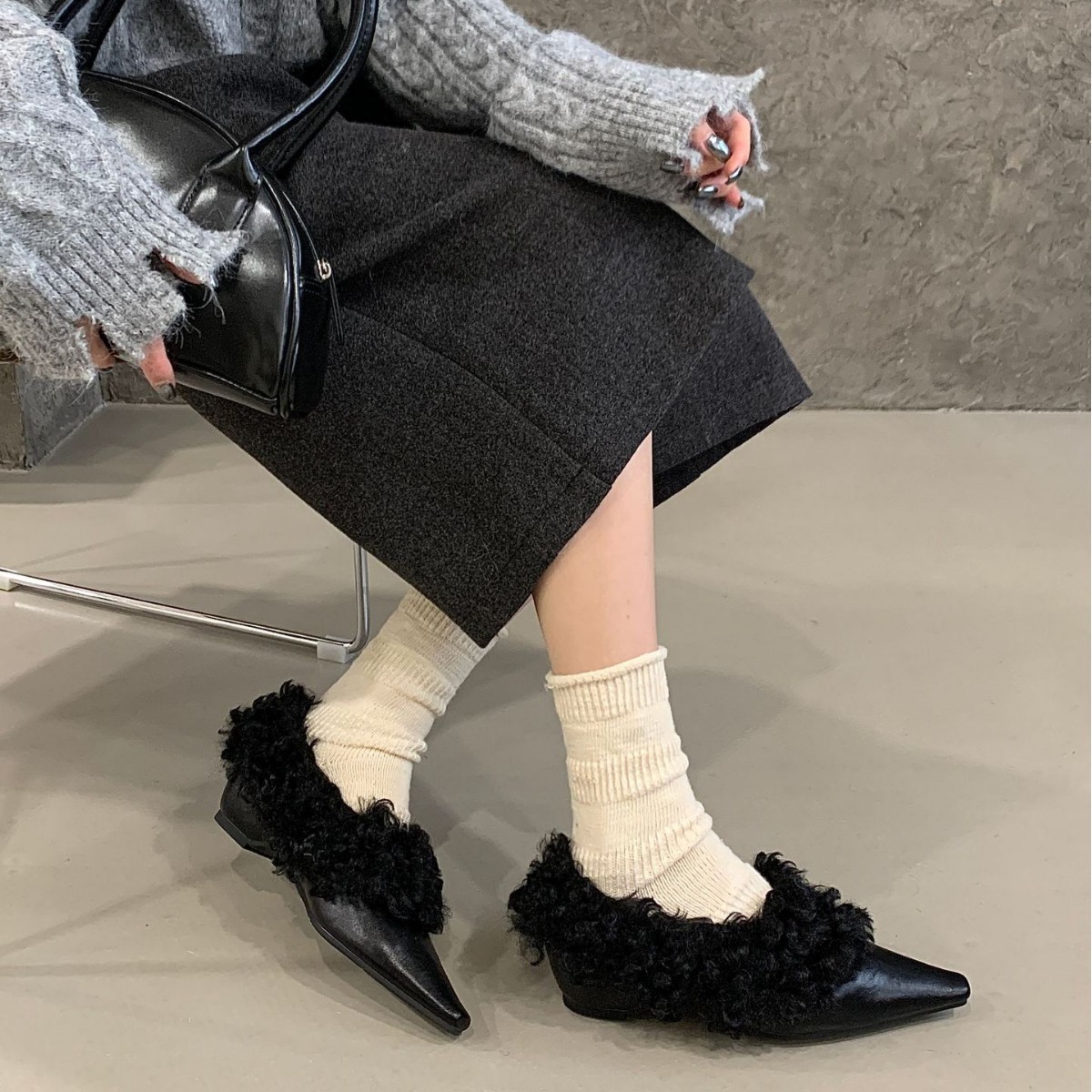 2025年冬玛丽珍高跟鞋法式网红羊羔绒毛毛鞋时尚保暖百搭新款毛鞋