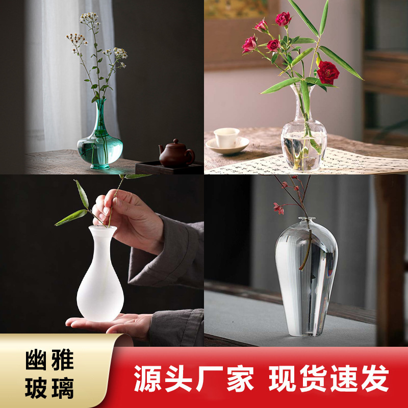 梅花瓶透明玻璃花器水培养花艺干花禅意插花花瓶装饰摆件磨砂花瓶